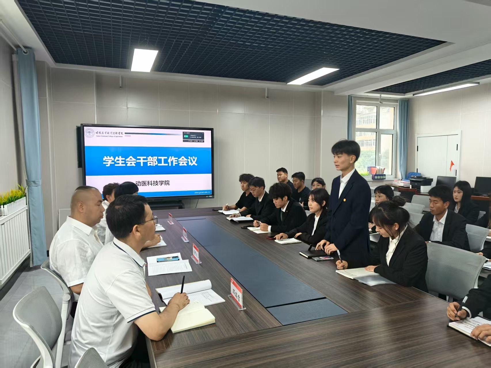 为推动新学期学生会工作顺利开展,提升学生干部的工作能力与服务意识,9月9日,动医科技学院召开了新学期学生会工作推进会。学院党总支书记、院长、分管学生工作副书记以及团委书记四位老师出席会议,与学生会全体成员共同规划新学期工作蓝图。