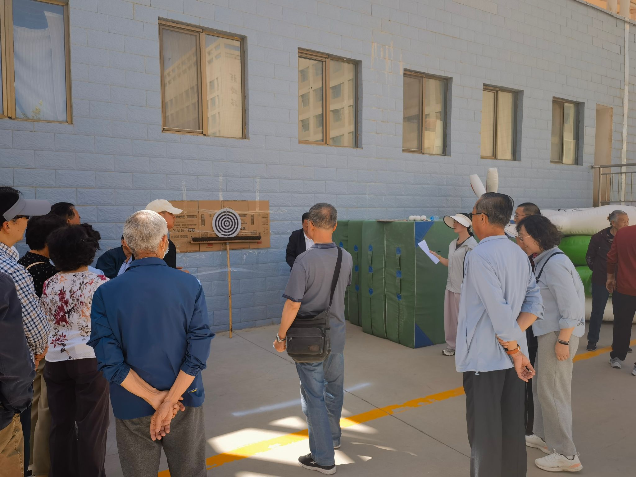 活动现场,垒球投掷、套圈、扎镖三个活动项目吸引了众多离退休教职工热情参与。在垒球投掷区,他们积蓄力量,奋力将垒球掷出,每一次投掷都伴随着周围师生的欢呼与鼓励;套圈区域则充满了欢声笑语,教职工们全神贯注,手中的套圈在空中划出优美的弧线,当套中目标时,大家纷纷鼓掌庆贺;扎镖项目前,老同志们屏气凝神,精准瞄准,展现出了不输年轻人的专注与技巧。