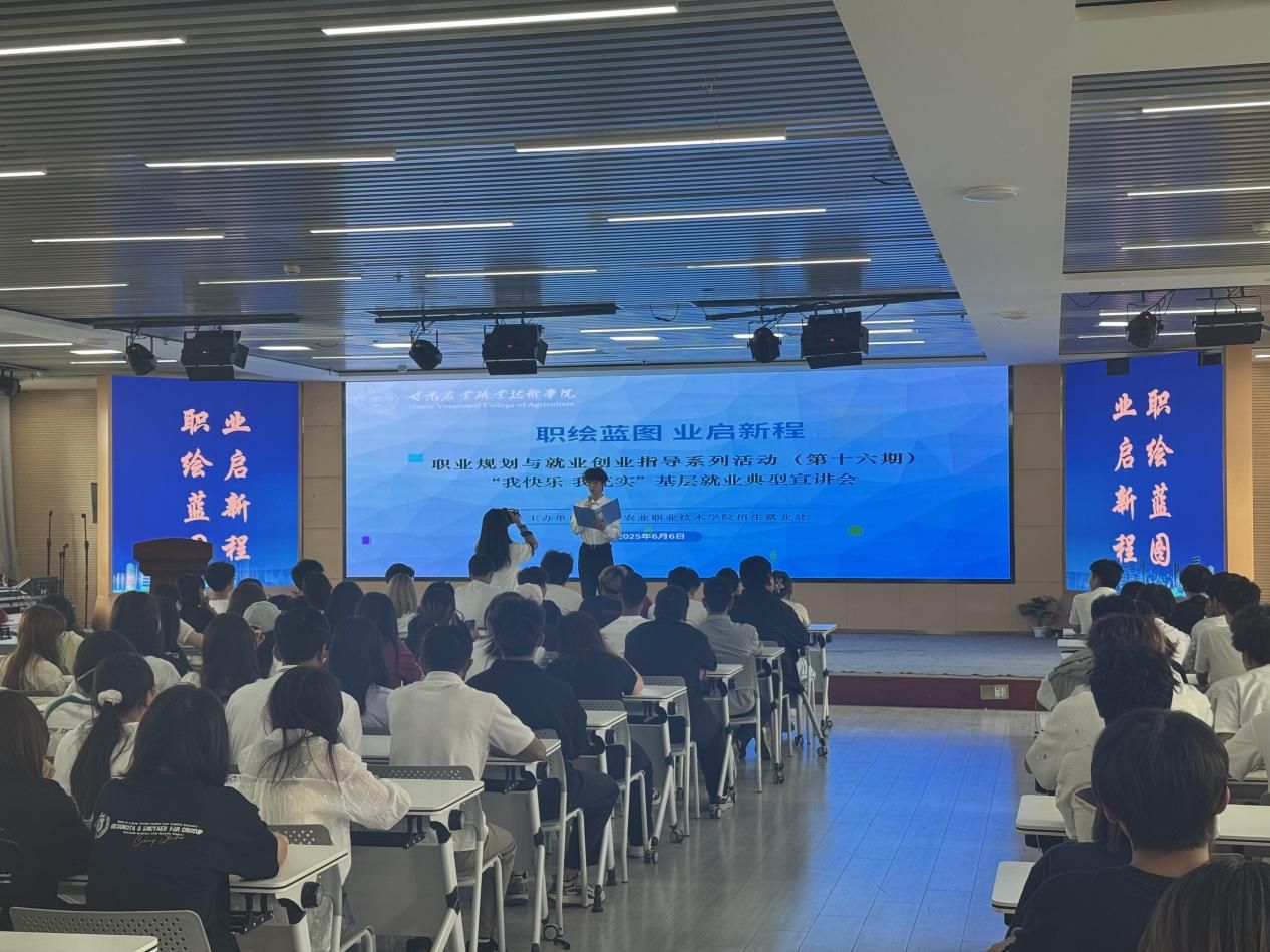 6月6日,学校举办“职绘蓝图 业启新程”职业规划与就业创业指导系列活动(第十六期)基层就业典型宣讲会,全校500余名学生参与活动。