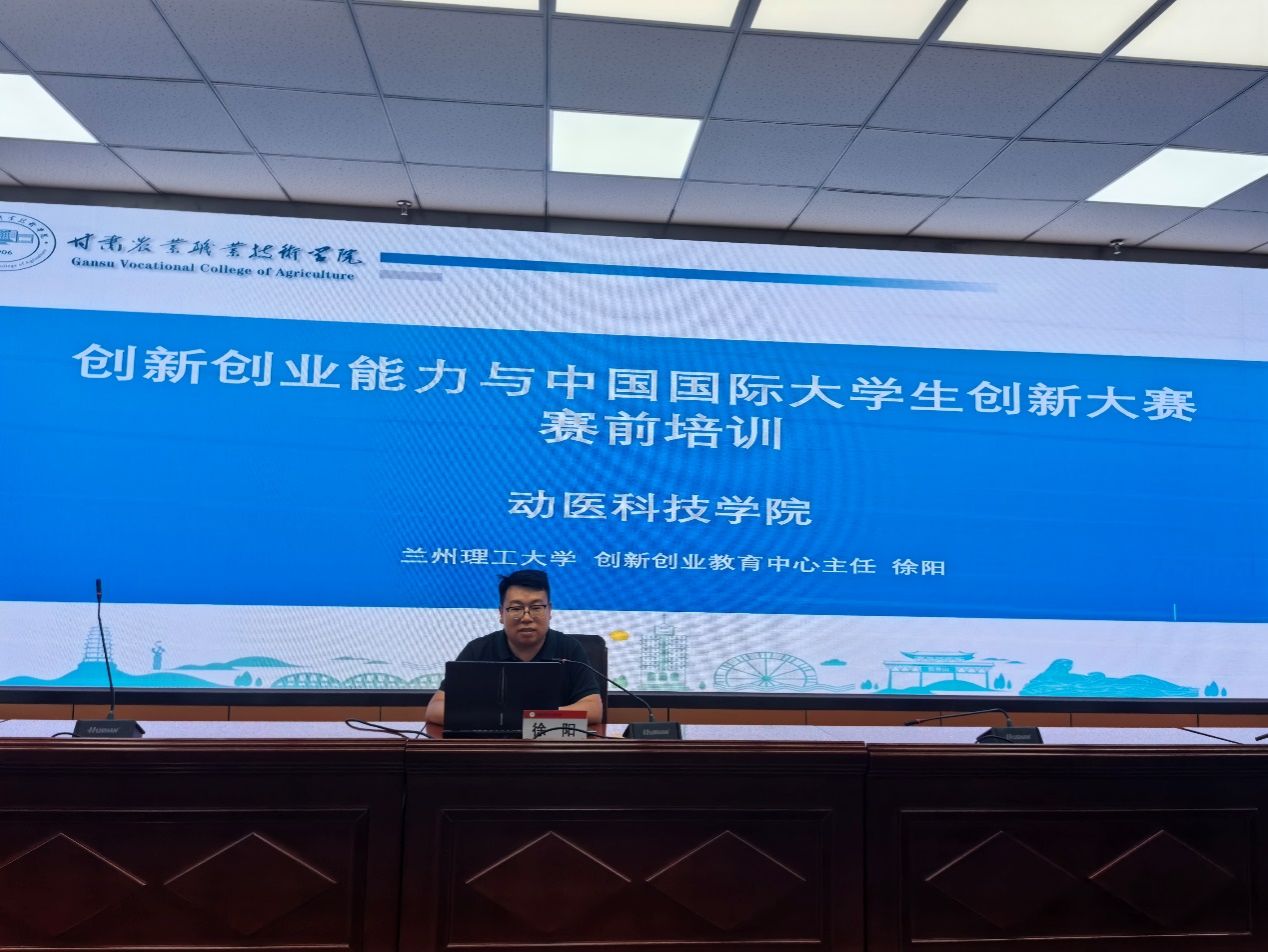 6月10日,学校动医科技学院特邀兰州理工大学创新创业教育中心主任徐阳在尔黼楼六楼多功能厅作“创新创业能力提升与中国国际大学生创新大赛赛前培训”专题讲座。共200余人参加培训,动医科技学院院长主持本次培训。