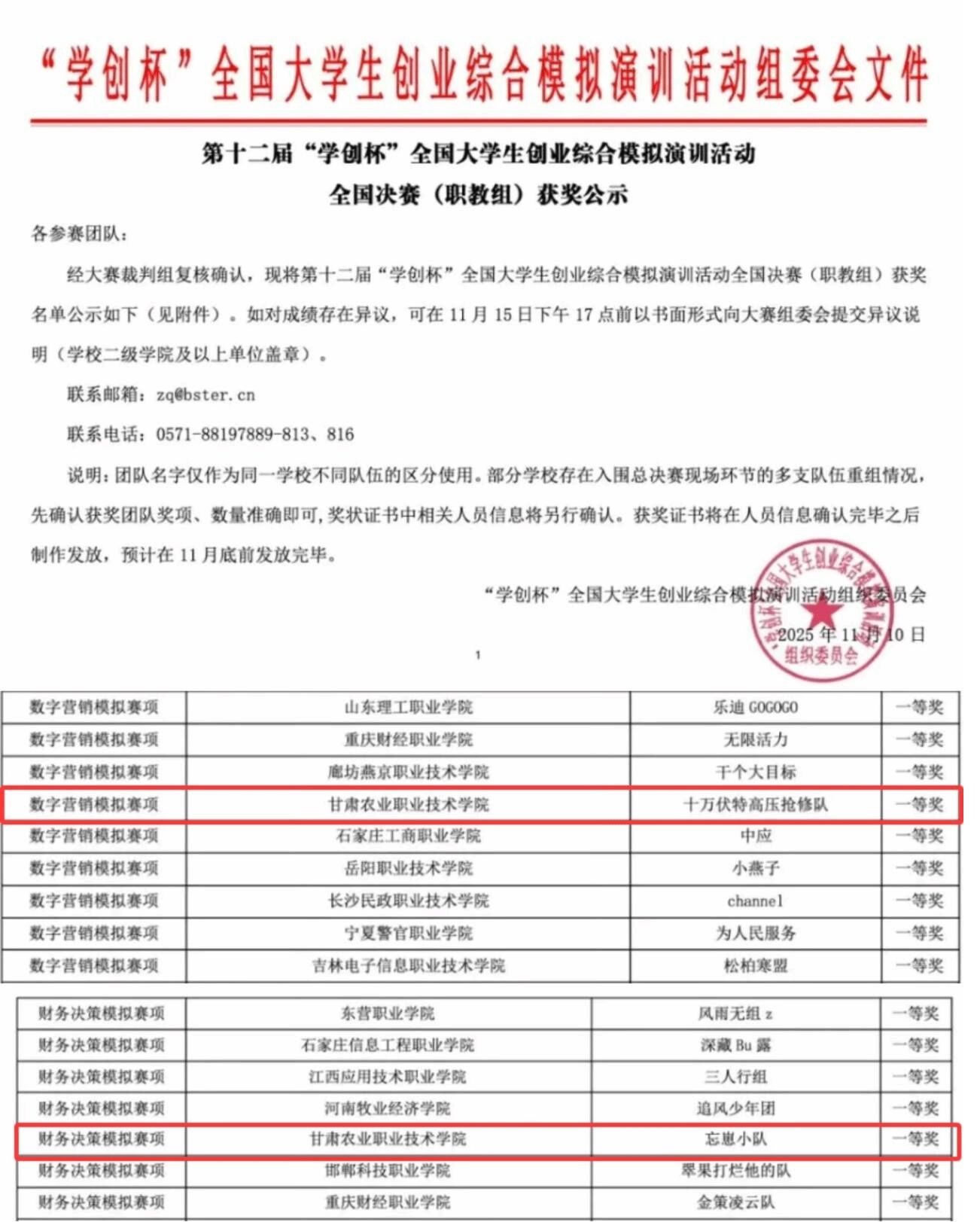 近日,第十二届“学创杯”全国大学生创业综合模拟演训活动全国总决赛(职教组)在威海职业学院成功举办。经过激烈角逐,我校经贸与电商学院选派的多支参赛队伍在数字营销模拟和财务决策模拟两个赛项中双双斩获全国一等奖,展现了我校学生扎实的专业知识、出色的实战能力与良好的团队协作水平。
