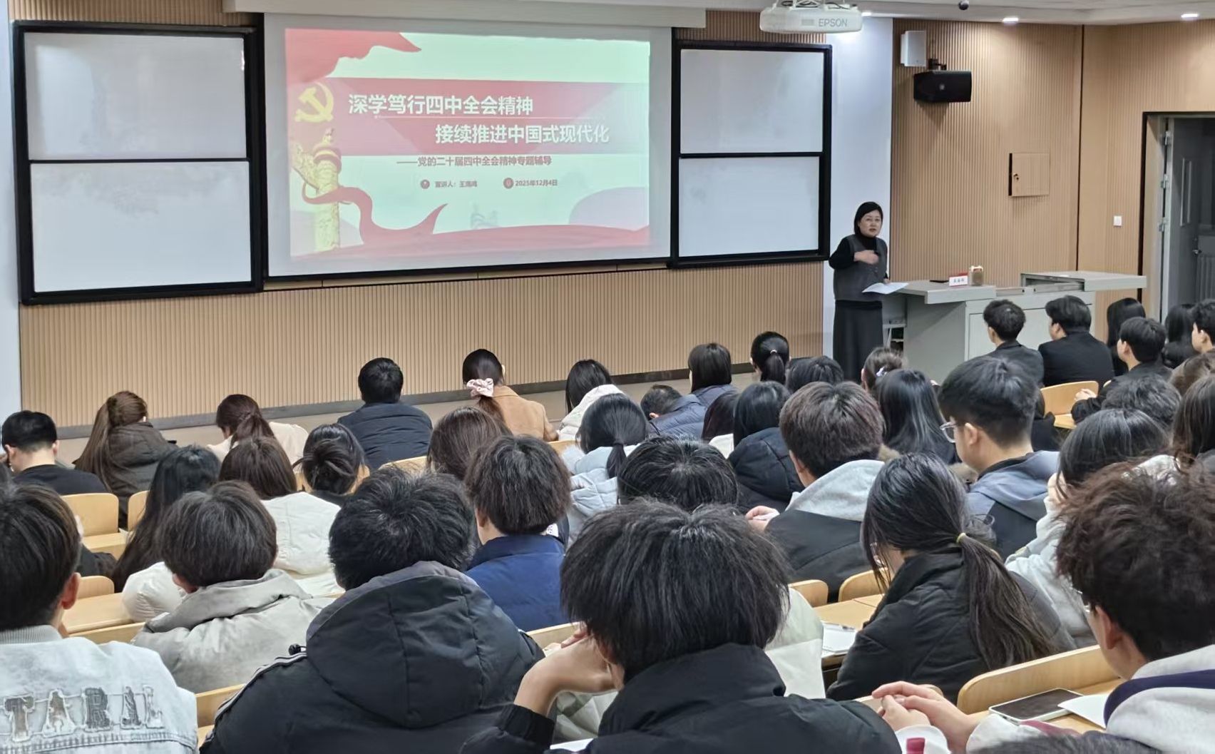 为深入学习贯彻党的二十届四中全会精神,切实把师生思想和行动统一到全会部署要求上来,12月4日,马克思主义学院王海鸿教授在学校尔黼楼200教室作题为“深学笃行四中全会精神,接续推进中国式现代化”的专题辅导报告。农业与生态学院、信控与智慧学院相关负责人,全体班主任、辅导员及学生代表160余人参会。