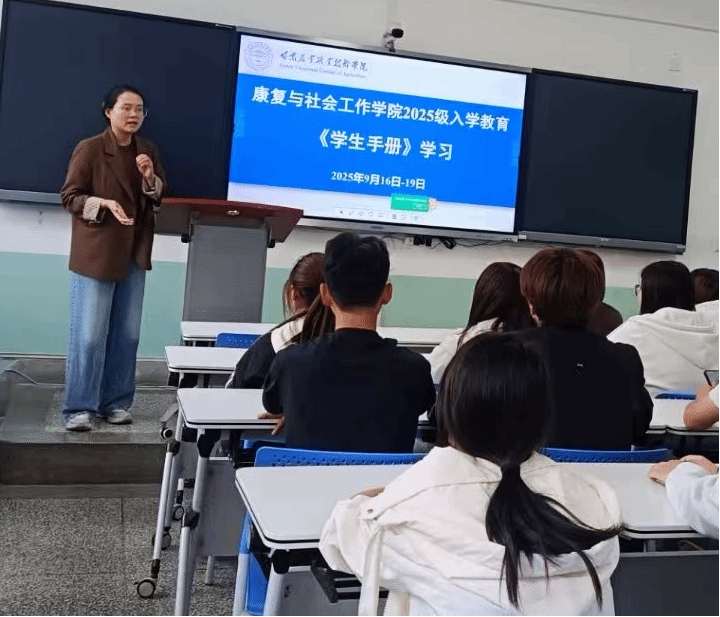 为了让2025级新生尽快了解我校规章制度,增强纪律观念和自我管理能力,康复与社会工作学院于9月15日至23日在各班主任的主持下,顺利开展了甘肃农业《学生手册》专题学习班会。