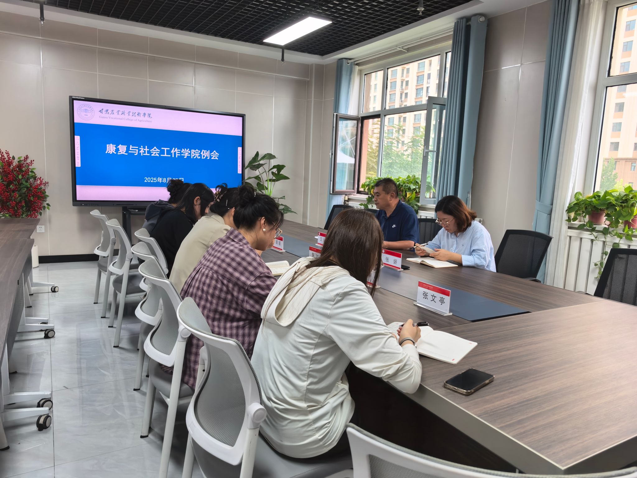 8月27日下午,康复与社会工作学院在经权楼217会议室召开学院工作会议,传达学校新学期工作安排会议精神,全面部署新学期教学与迎新工作。学院全体教职工参加了会。