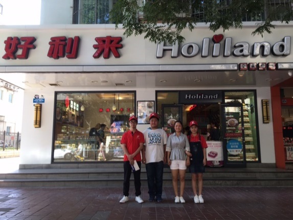 7 月 19 日兰州实践队在兰州好利来渭源路店寻访到了 12 级毕业生杨晓兰。看见杨晓兰时,她正在全神贯注地做裱花,由于公司要求店里不能拍照,所以很遗憾没有留下她当时的工作照。我们等她忙完手头的工作,换完工作服才开始采访,由于店里消费者太多,我们只能在店外面采访,店里有规定不能穿工服外出,所以她就将工作服换掉。采访中杨晓兰给队员们介绍了好利来公司的福利和待遇,讲到公司管吃管住,上交五险,年末会给公司员工多发一个月的工资,但这一个月的工资不是给员工的,而是给员工的父母。杨晓兰告诉我们,她对自己现在的工作很满意,她本人现在是二级面包师,打算在考面包师的时候也考裱花师,不断地提升自己。当被问到对想学面包的在校大学生的建议时,她说:“对于一个面包师来说,夯实基础是必须首先要做的,大学生学习面包时,要开拓视野,多跟别人交流,多看,多想。”
