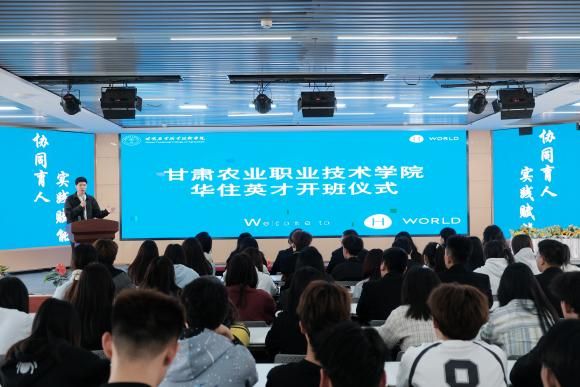 开班仪式中,“华住英才班”学员获颁录取通知书,并举行甘肃农业职业技术学院食品与文旅学院行业专家受聘仪式。