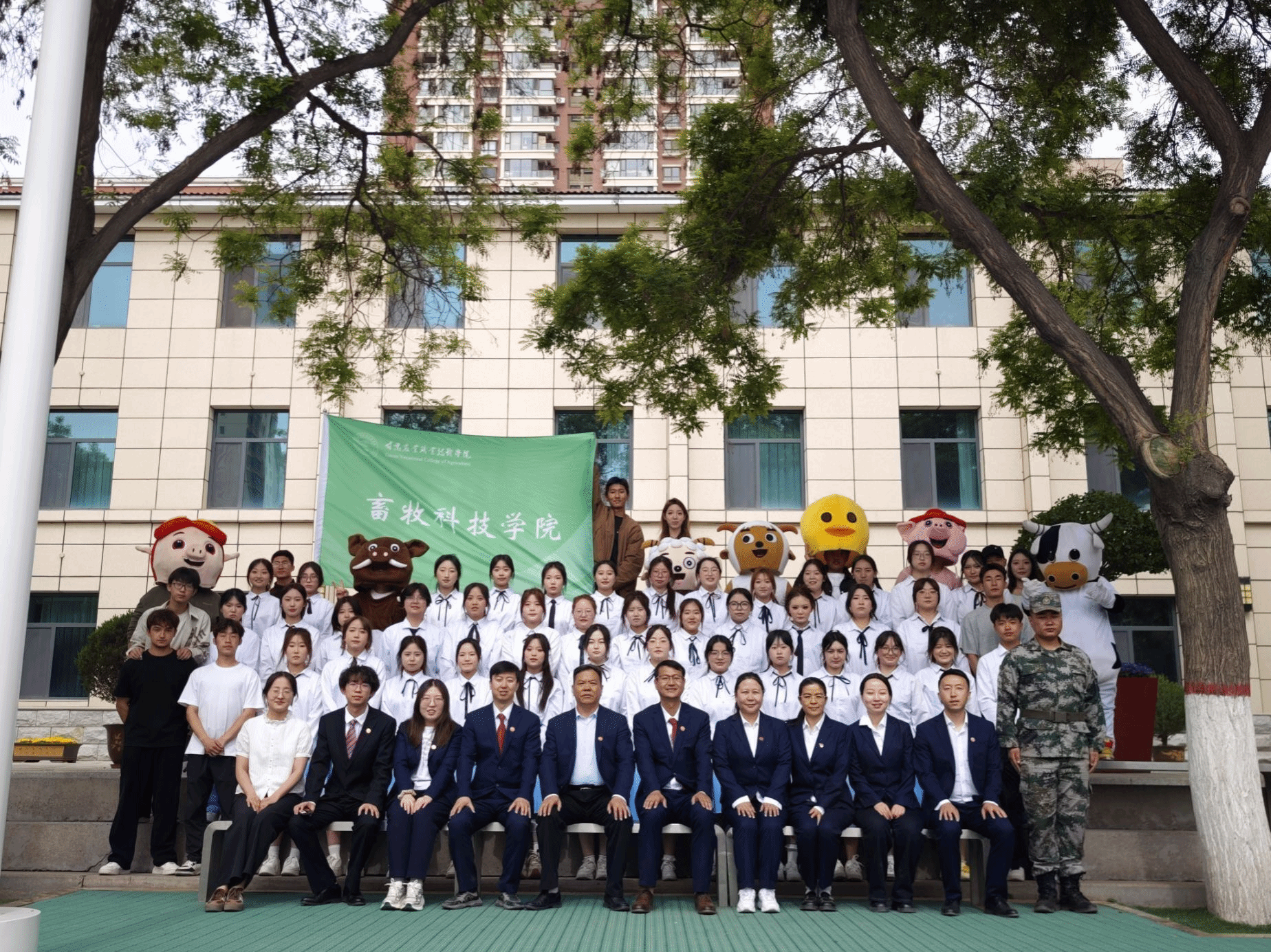 看那猎猎翻卷的6×9米巨幅院旗!蔚蓝旗面如广袤草原,金黄色院徽绽放科技锋芒。昭示着现代畜牧人“把论文写在大地上”的豪情壮志!看那白鸽飞起,象征着和平、希望;象征着放飞梦想;象征着学院的发展蒸蒸日上;象征着学子们大鹏展翅、前程似锦的远大抱负!