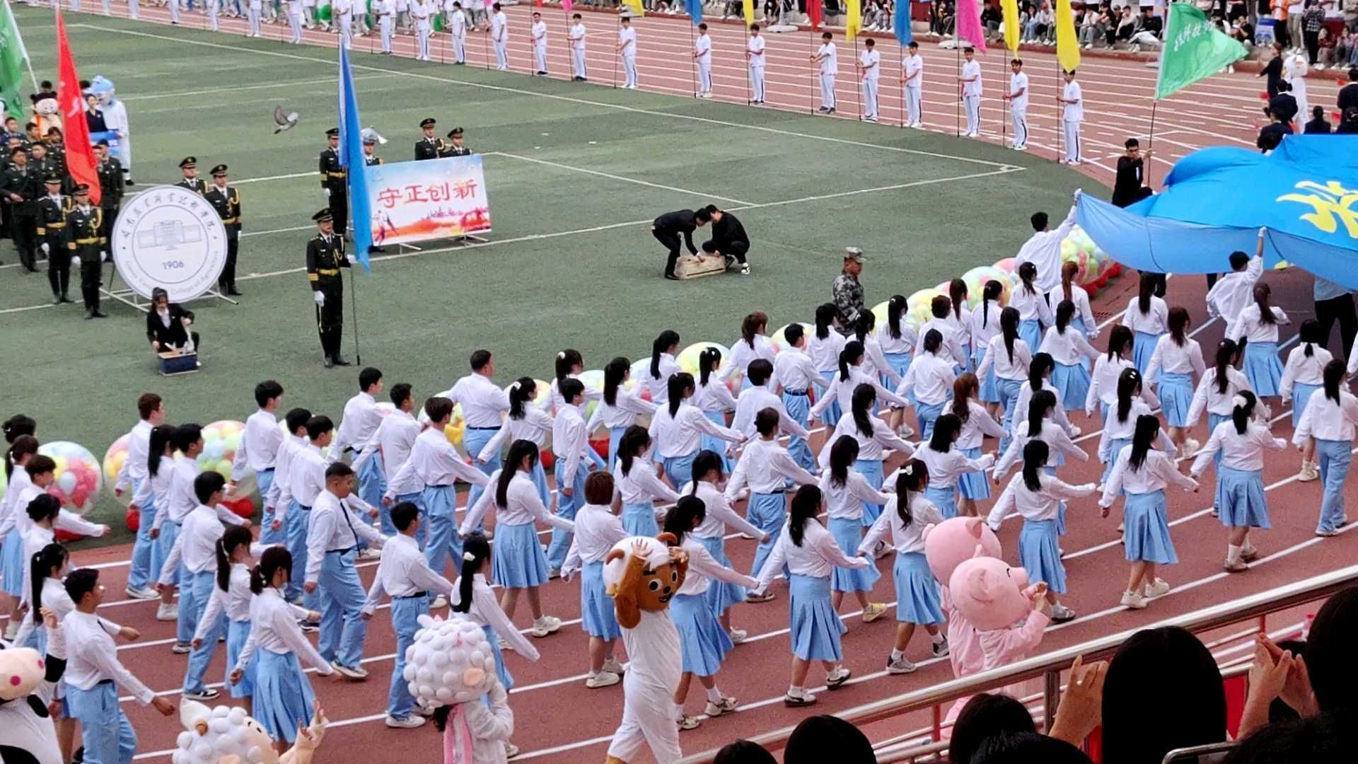 开幕式上,畜牧科技学院方阵同学身着象征青春与希望的蓝色队服,他们白衫如云,蓝裤似海,翻涌着科技兴牧的澎湃力量!以整齐的步伐、嘹亮的口号和创新的编排赢得全场掌声队伍中跃动着畜牧天团的萌趣使者——憨态可掬的牛宝玩偶,灵动可爱的喜羊羊,圆润福相的猪宝宝。这些鲜活符号,诠释着“强牧兴农、富民以牧”的产业担当!