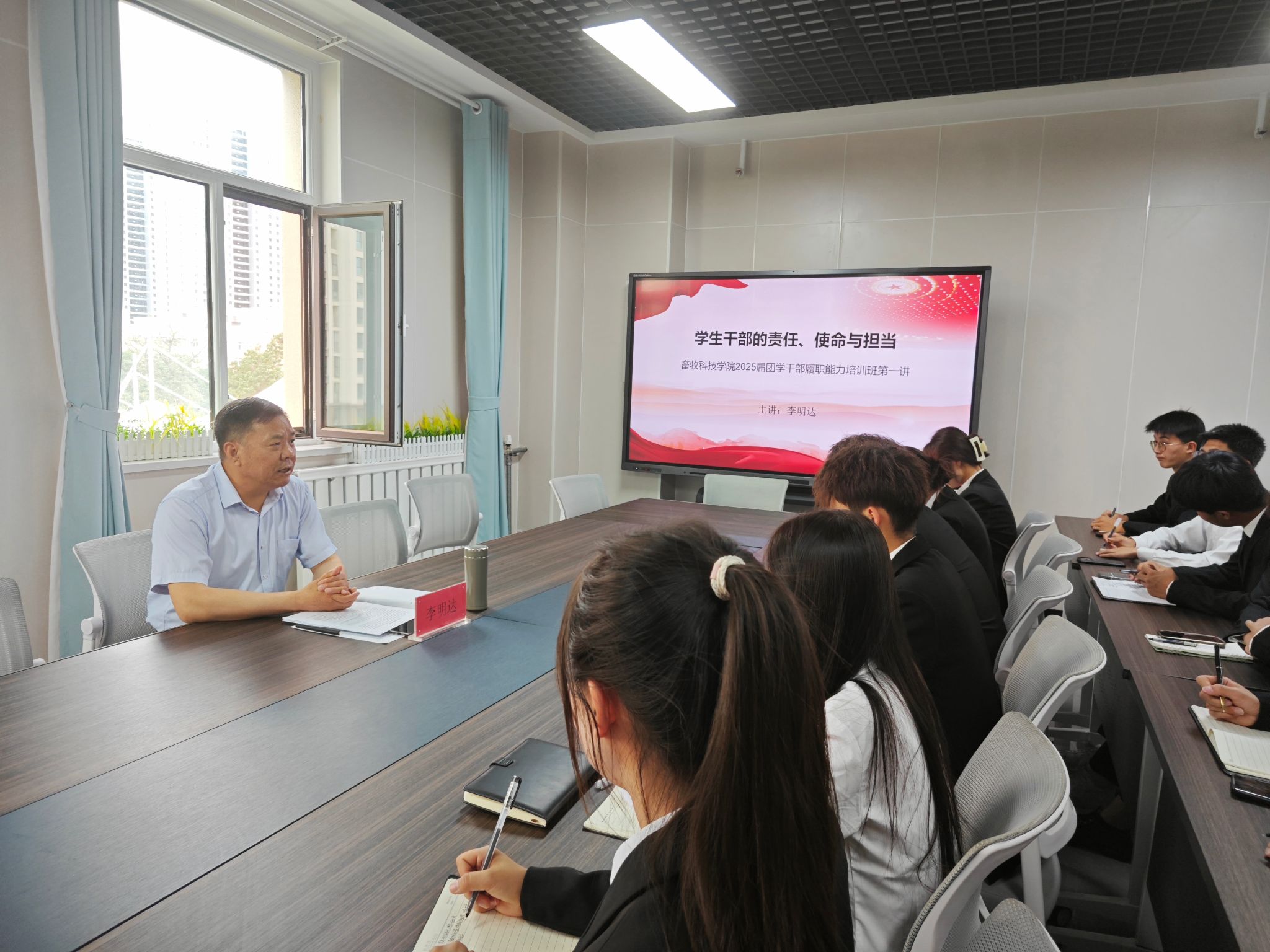 为加强学生干部队伍建设,提升新任学生干部的综合素质与服务能力,畜牧科技学院于2025年6月6日在经权楼415会议室举行2025届学生干部培训开班仪式。学院党总支书记班子成员、团总支书记及2025届团总支、学生会、各班团干部参加了培训会,培训班开班仪式由学院团总支书记主持。