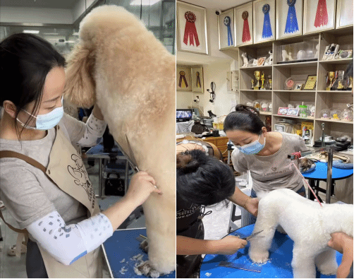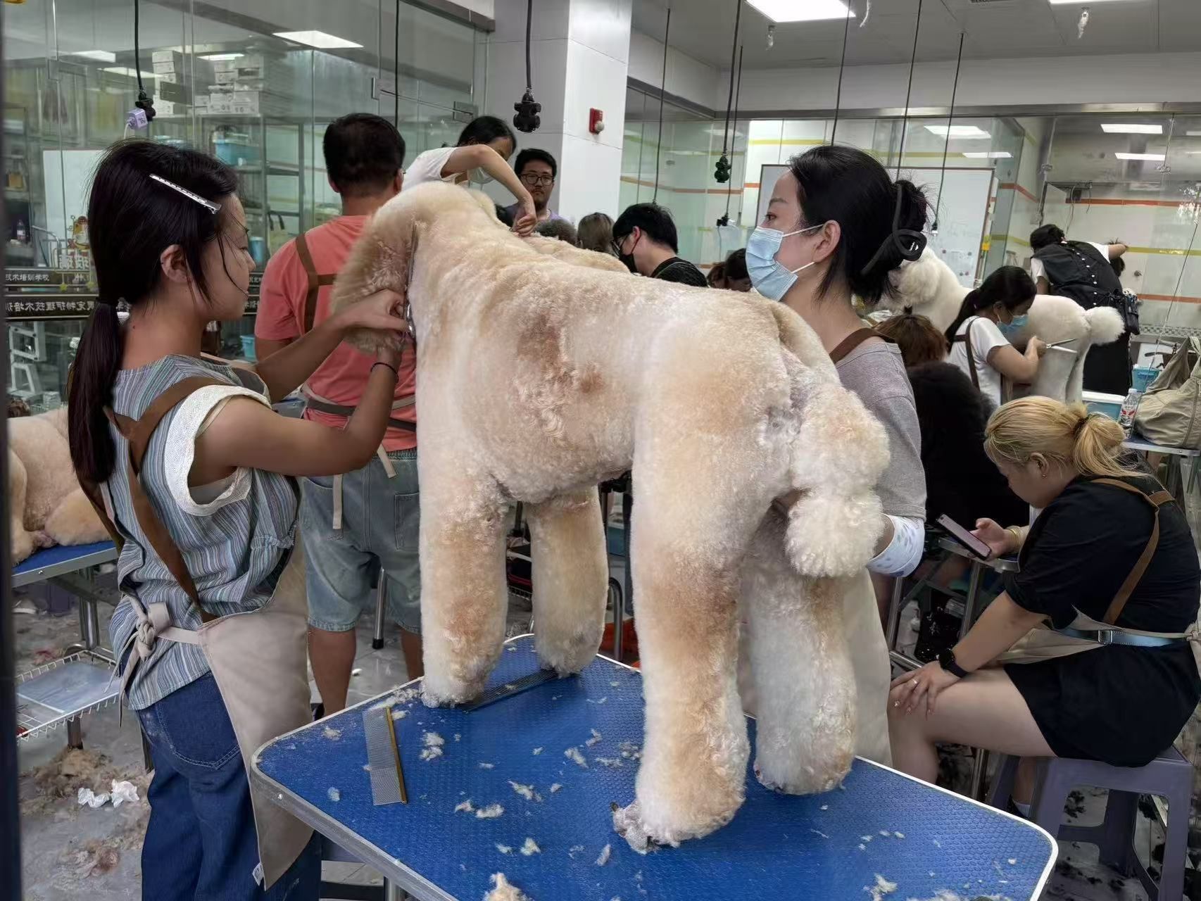 本次培训聚焦宠物美容行业的先进技术与实操规范,内容涵盖犬猫基础清洁护理、健康检查、美容工具使用与维护等核心技能,并重点深入学习了当今流行的多种犬类美容造型技艺。培训采用理论讲授与高强度实操相结合的模式,曹爱老师克服暑期高温天气,潜心钻研,勤学苦练,不仅熟练掌握了各类造型的修剪技巧,更对宠物行为学、美容安全与伦理规范有了更深层次的理解。