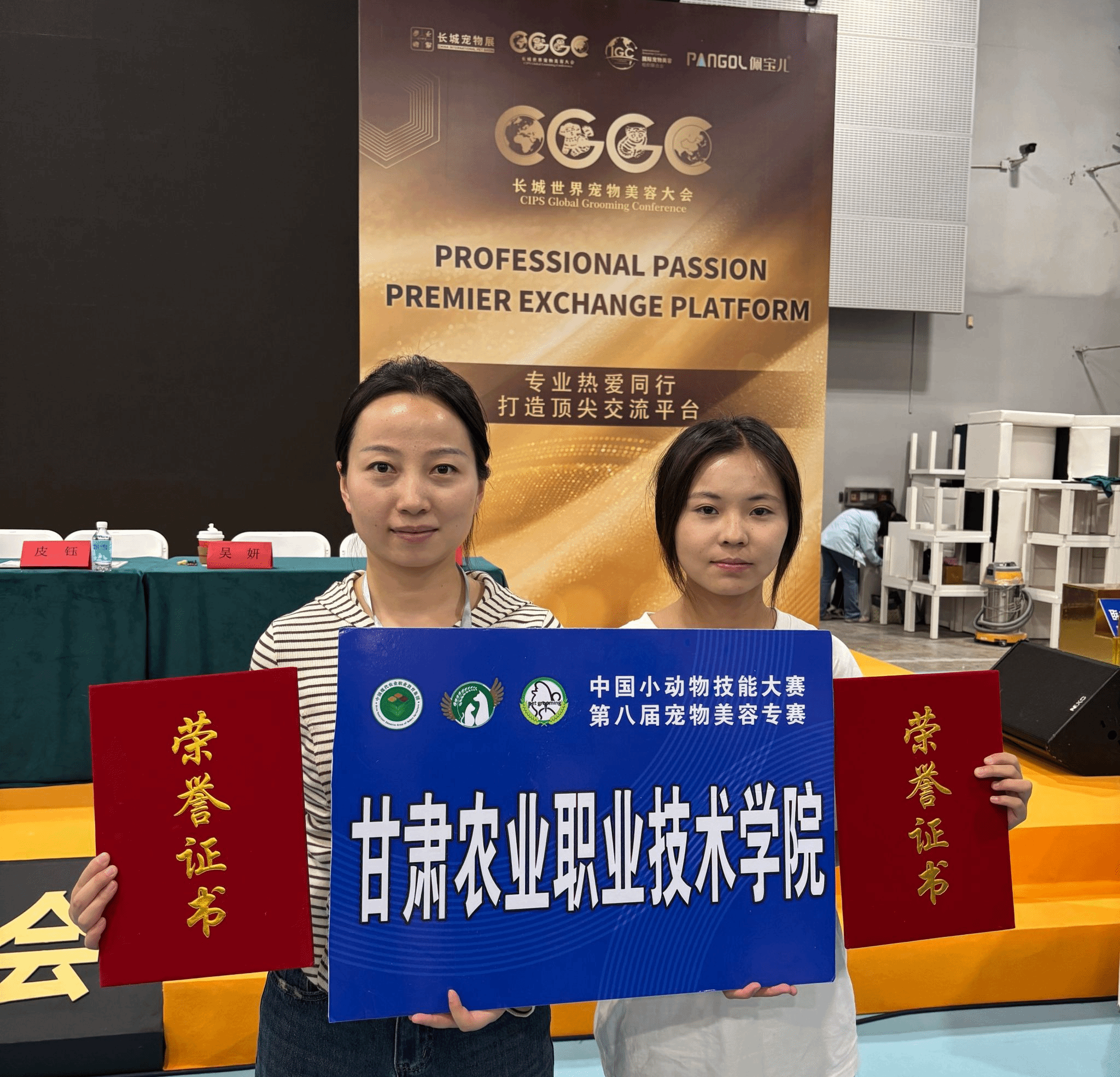 第八届中国小动物技能大赛宠物美容专赛在广州圆满落幕。畜牧科技学院教师曹爱和学生邱湘荣在比赛中表现优异,获得三等奖。学校凭借卓越的人才培养质量荣获“教育发展基石奖”,曹爱老师个人荣获“宠美学术卓越奖”。