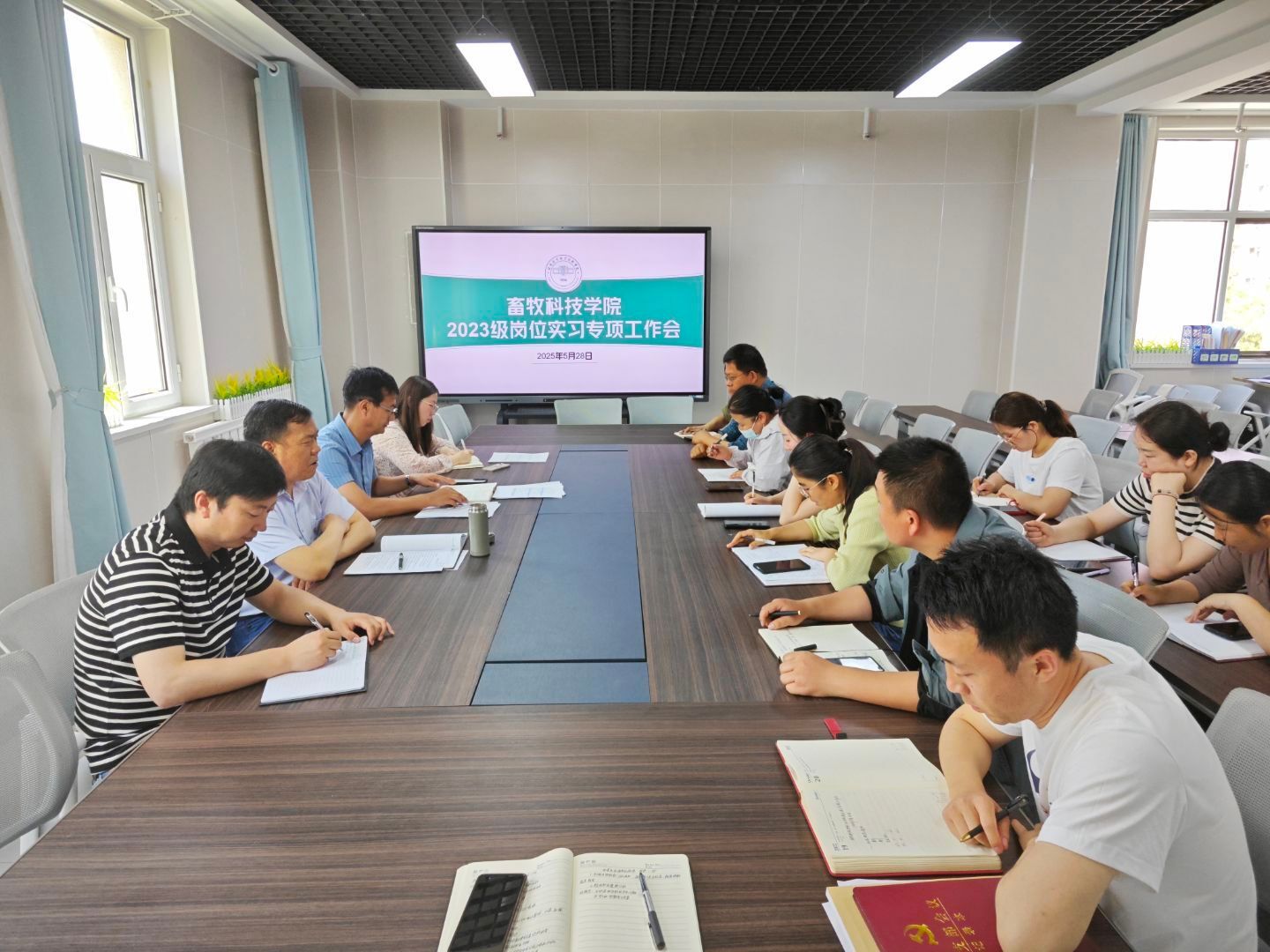 为扎实推进学生实习工作,确保岗位实习环节高质量完成,畜牧科技学院于2025年5月28日在经权楼415会议室召开2023级学生岗位实习安排专项工作会议。学院领导班子成员、各专业负责人及辅导员班主任参加会议,会议由学院分管实习就业工作的副院长主持。