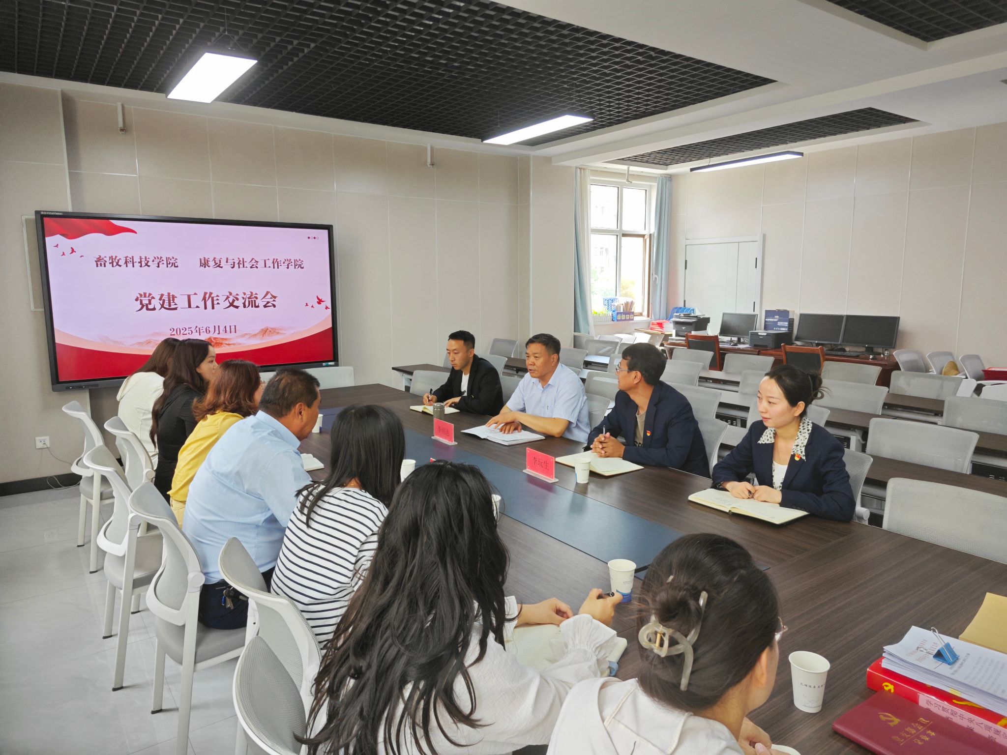 为深入学习贯彻党的二十大精神,进一步加强基层党组织建设,促进党建工作与业务发展深度融合,以高质量党建引领业务工作的高质量发展,2025年6月4日下午,畜牧科技学院和康复与社会工作学院党总支在经权楼畜牧科技学院415会议室开展党建工作座谈交流。双方学院的党总支书记、院长、教工支部书记、学生支部书记及党务干事参加了座谈会。会议由畜牧科技学院党总支书记主持。