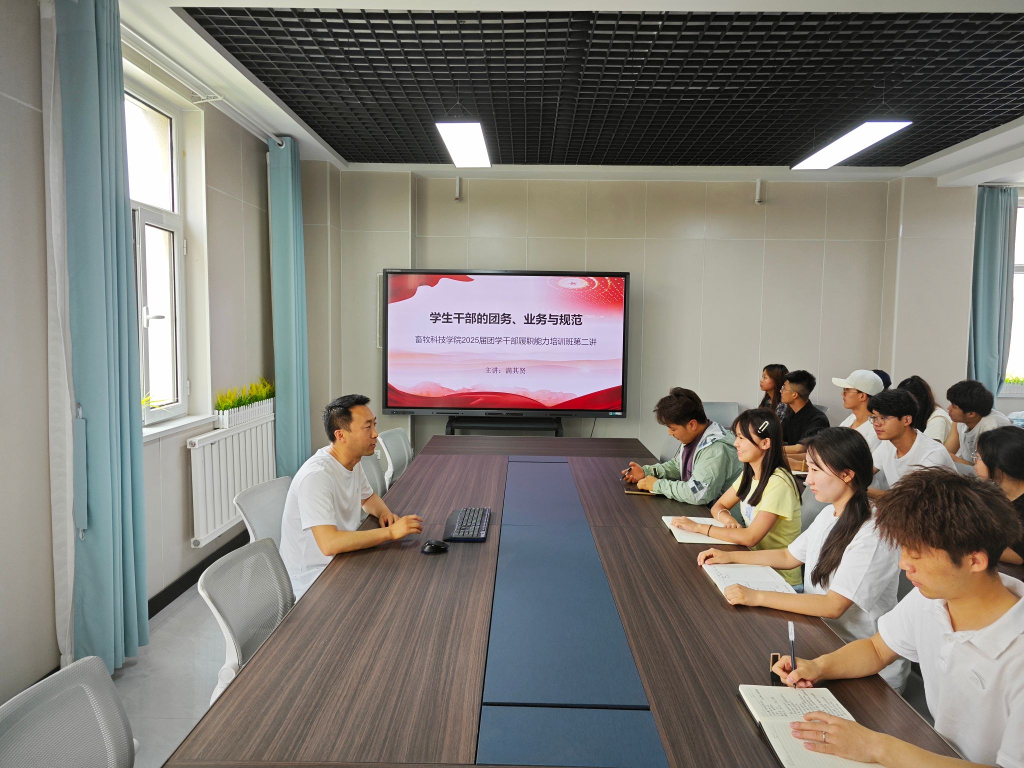 为深化团学干部责任意识,提升履职能力,推动学院团学工作规范化、专业化发展,6月20日,星火相传启新程,砥砺奋进担使命——畜牧科技学院2025届团学干部履职能力培训班第二讲在学院415会议室如期举行。本次培训主要围绕“学生干部的团务、业务与工作规范”展开讲解。由学院团总支书记主讲,全体2025届学生会、各班团干部参加了学习。