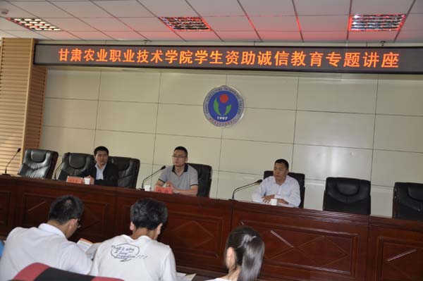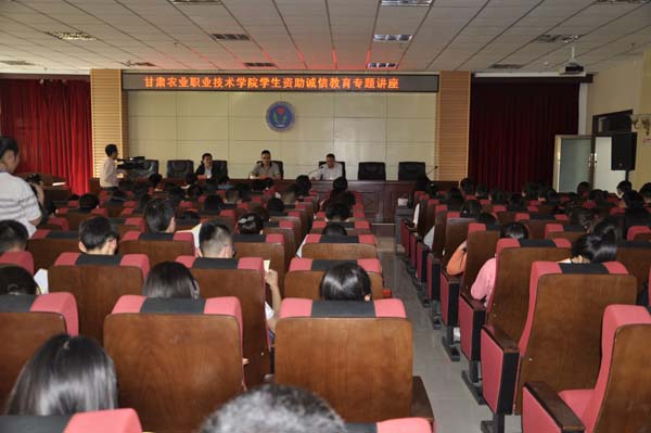 6月2号下午,由学生工作部(处)组织,邀请国家开发银行甘肃分行赵磊经理主讲的大学生资助诚信教育专题讲座在我院二号教学楼多功能会议室举行。讲座由学生工作部部长李明达主持,助贷干事及学生代表260余人现场聆听了讲座。