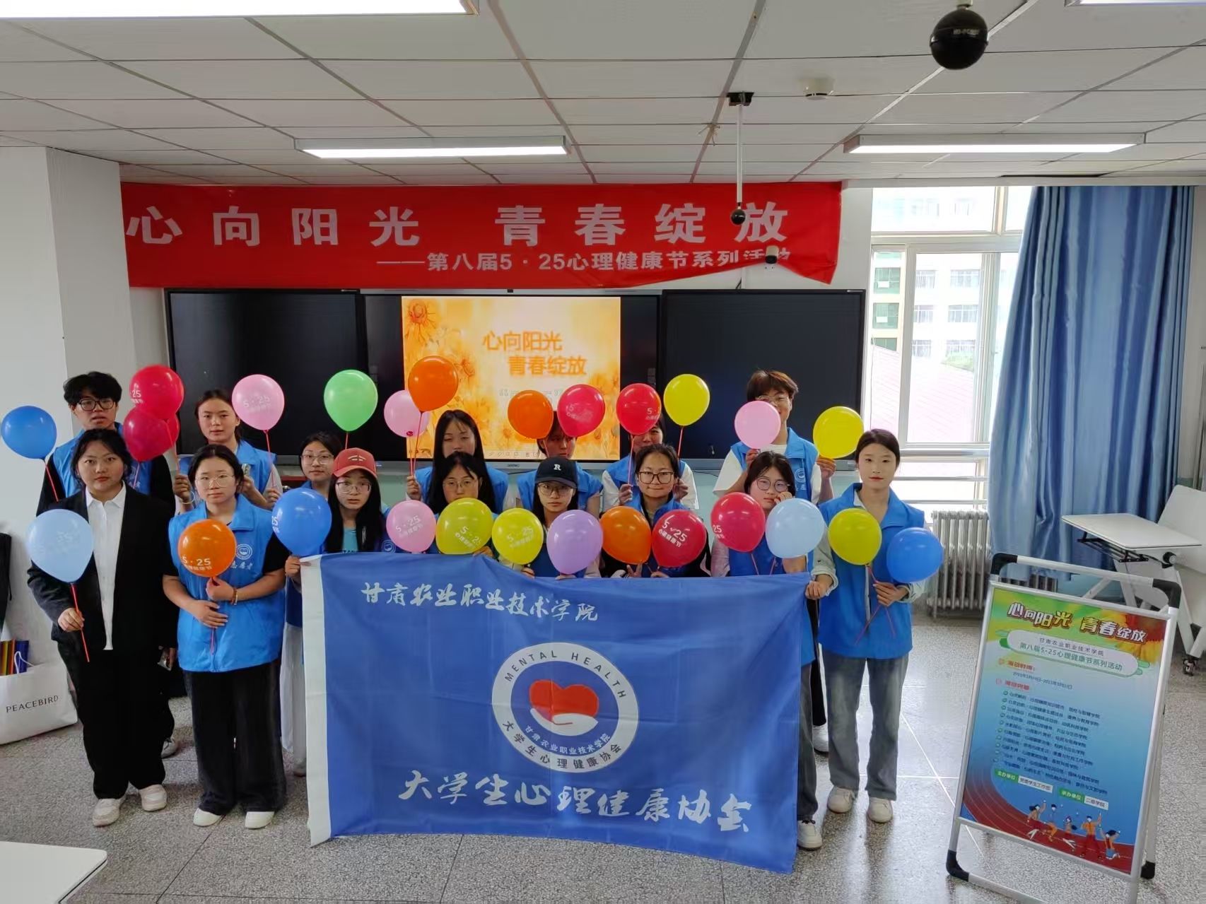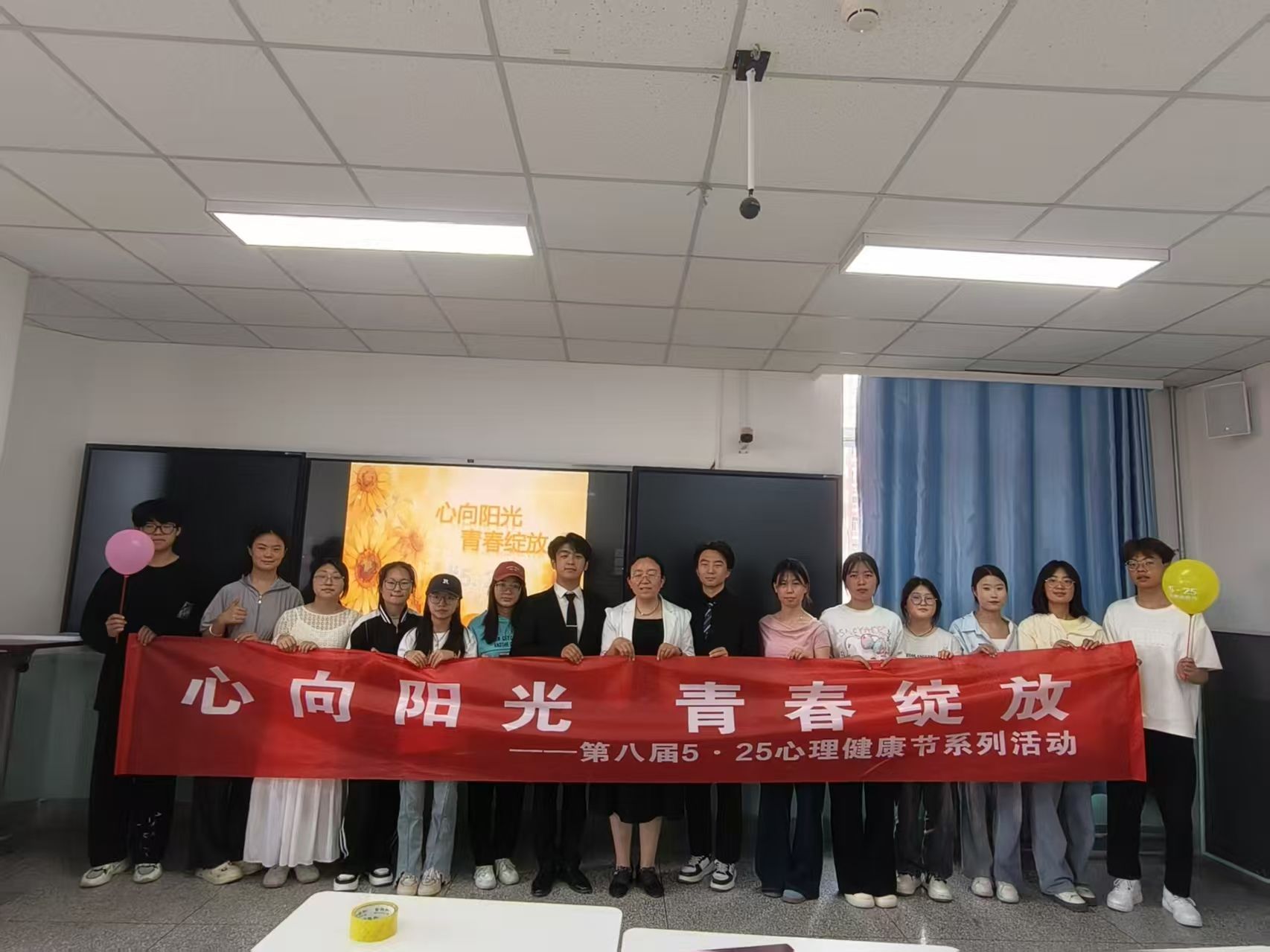 2025年5月25日下午,大学生心理健康协会在英甲楼521教室隆重举办“心向阳光,青春绽放”5·25心理健康节拓展活动。参加此次活动的有大学生艺术团、大学生心理健康协会部分成员。