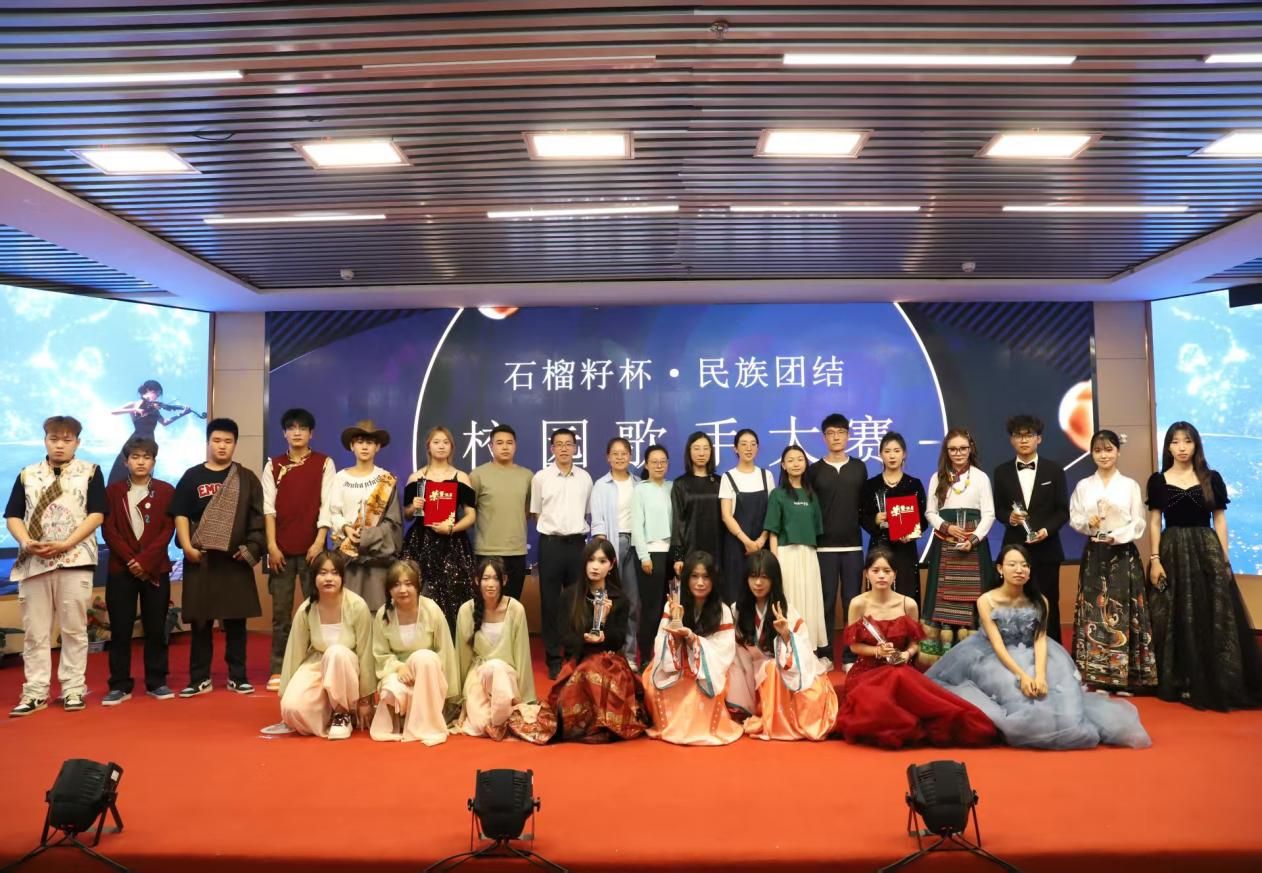 近日,由我校党委宣传统战部、学生工作部、团委联合举办的“石榴籽杯·民族团结校园歌手大赛”总决赛在英甲楼7楼多功能厅璀璨落幕。来自全校各民族的学子以歌为媒、同台竞艺,用饱含深情的旋律唱响了民族团结的时代强音,为观众献上了一场精彩纷呈的艺术盛宴。决赛现场流光溢彩,气氛热烈。从初赛、复赛中脱颖而出的各族选手轮番登台,倾情演...