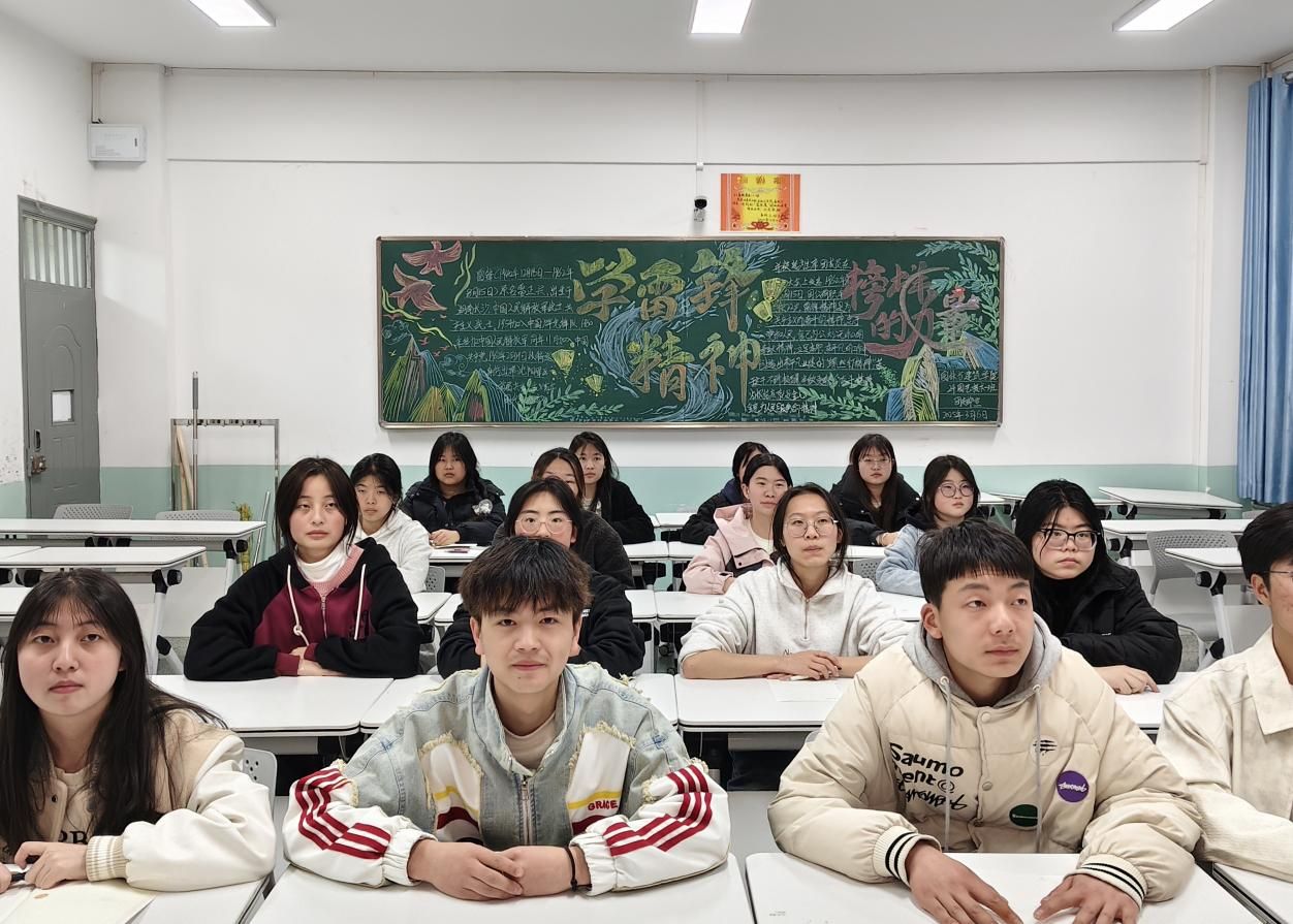 活动伊始,各班团支书通过PPT讲解、视频和黑板报展示等形式向同学们详细介绍了雷锋同志的生平事迹,雷锋的故事深深扣动了同学们的心弦,他们聚精会神地聆听,对雷锋精神有了更深刻的理解。随后,在团支书的引导下,同学们围绕“如何在新时代践行雷锋精神”展开了热烈的讨论。同学们积极分享自己的观点,纷纷表示要从身边的小事做起,关心同学、帮助他人,以雷锋为榜样,勇担使命、勇挑重担,在党和人民最需要的时候冲得出来、顶得上去,在担当伟大事业中练就新本领、建立新功业。