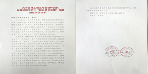 疫情袭来天地寒,众人相助山川暖。园林工程系积极响应学院号召,即刻行动,在坚决做好疫情防控工作的同时,积极布署组织党员及教师员工自愿捐款支持疫情防控工作。