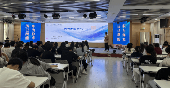 为帮助2026届毕业生更好地了解行业动态,提升就业竞争力,我院于6月9日在英甲楼7楼报告厅成功举办了“职引未来·筑梦园林”实习就业经验分享会。本次活动邀请2025届优秀毕业生豆衍东,围绕求职技巧、实习经验、行业趋势等主题展开交流,吸引了200余名学生现场参与。