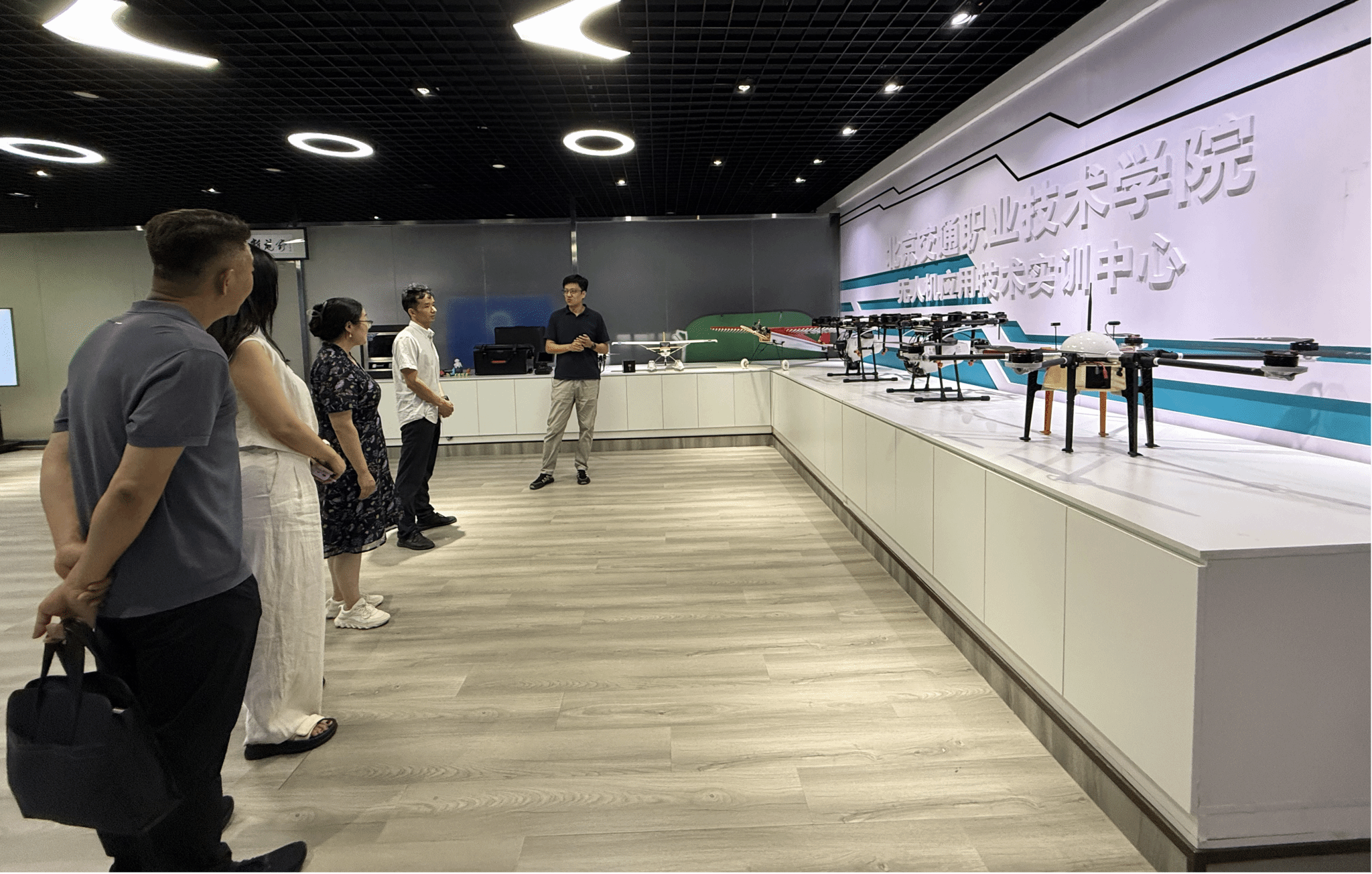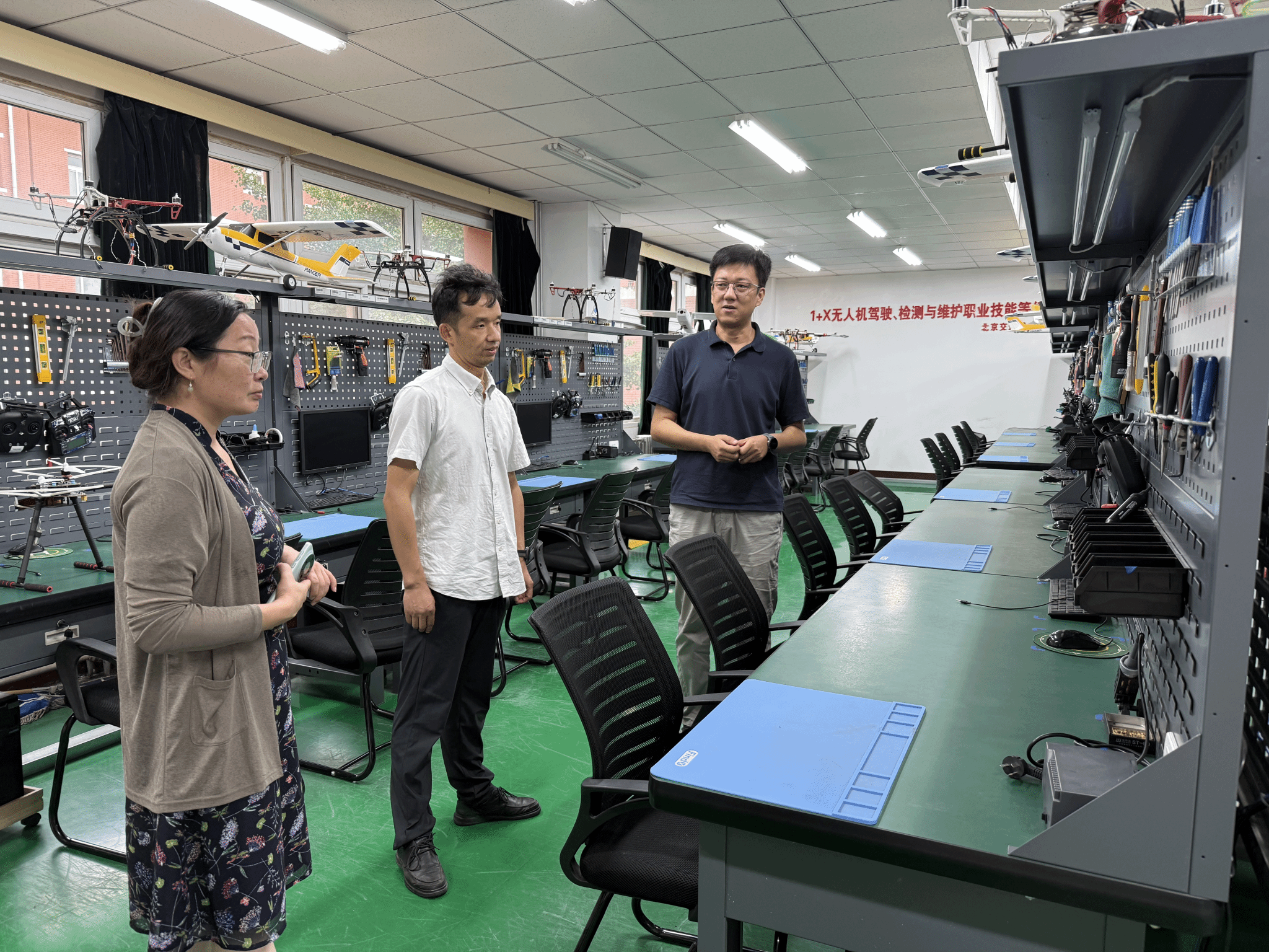 参观过程中,一行三人认真听取了介绍,并就无人机实训课程设置、学生技能培养模式、校企合作开展情况、行业应用案例以及未来技术发展趋势等,与对方进行了深入细致的交流探讨。李院长对北京交通职业技术学院在无人机应用技术专业建设和实训基地建设方面取得的丰硕成果给予了高度评价。