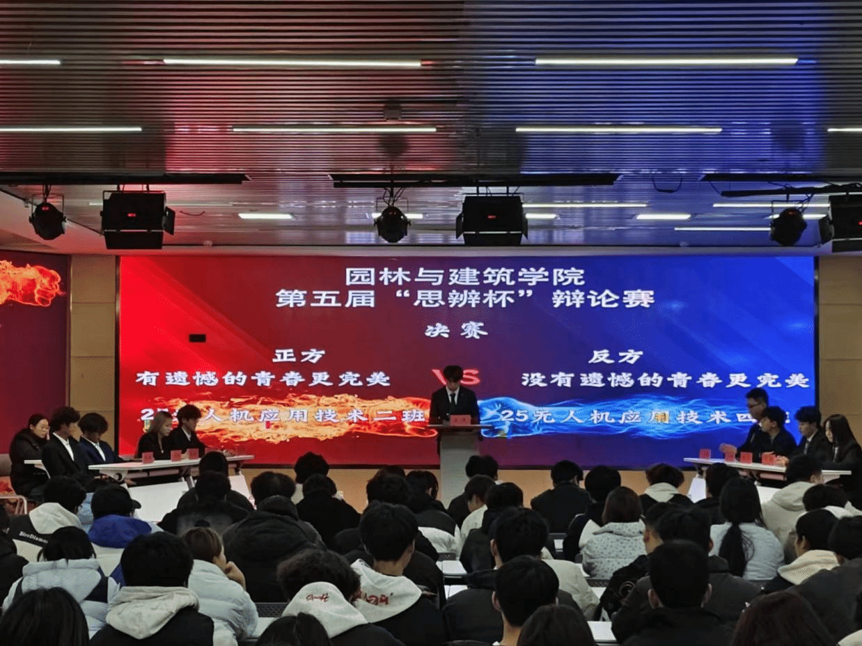 在为期数日的激烈角逐与思想交锋后,园林与建筑学院迎来了备受瞩目的第五届“思辨杯”总决赛,于2025年12月2日在英甲楼学术报告厅正式举行。本次的参赛队是正方代表队25无人机应用技术二班,反方代表队25无人机应用技术四班。为争夺最后的胜利,将为同学们展示一场青年才俊、促进思维碰撞的精彩对决。