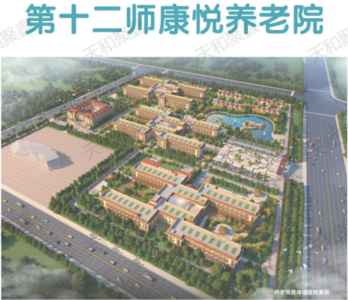 新疆生产建设兵团第十二师康悦养老院占地75亩,建筑面积共2.63万平方米,其中:一期建筑面积为1.37万平方米,二期建筑面积为1.26万平方米,人均占用面积为38平方,绿地率达49.9%,设置床位500张。一期于2019年11月竣工并交付使用,同时,挂牌成立了第十二师头屯河农场残疾人托养中心。是一家集医养结合、娱乐休闲、餐饮管理、临终关怀、社区及居家服务为一体的综合性养老机构。新疆生产建设兵团第十二师康悦养老院自2019年开业以来,以“关爱员工、孝敬长者”为服务理念,通过多年的努力,得到了广大者及家属的认可,现一期入住老人238人(入住率100%),目前,二期养老院正在装修,处于预约排队当中,预计年底可投入使用。