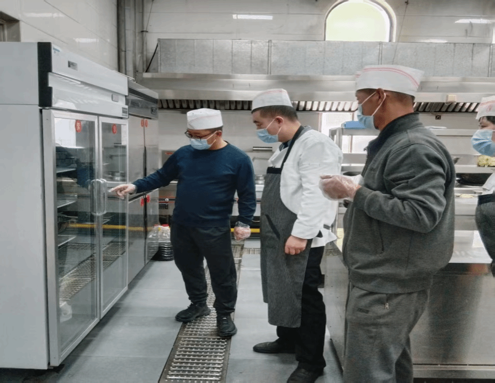 检查中,校区负责人对餐厅前厅、后堂、加工操作间、后堂操作间、原料储存间、气瓶间进行重点检查。在后堂检查时,详细查看了后堂环境卫生、加工区域布局、防鼠设施;在原料储存间,仔细查看原材料生产日期、进货台账;在气瓶间,详细了解了液化气的使用情况、气瓶间的安全保障,要求做到气瓶间空气流通顺畅,定期对液化气瓶进行安全检查。