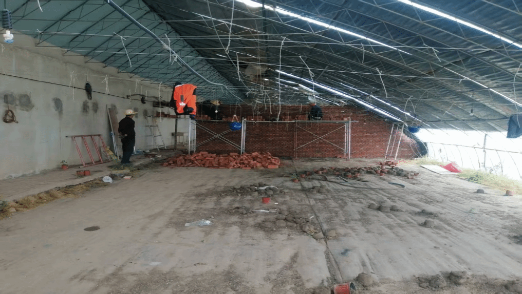 在基础设施维修项目现场,施工单位人员正在紧张有序推进项目建设,对原有8#温室存在安全隐患温室西侧山墙进行了拆除,在7#、8#日光温室内为防止整棚出现倾斜在棚中间砌筑山墙,对温室后墙体进行加固处理。经现场人员介绍:“严格按照施工图纸施工,把控工程质量,在确保工程安全的前提下,有序推进工程进展,早日完成项目建设并投入使用”。