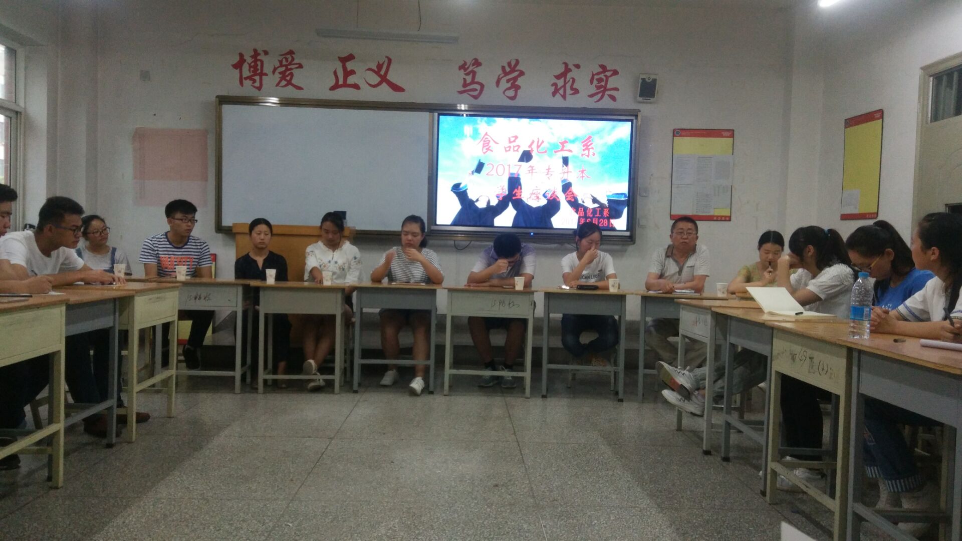 6月28日下午,食品化工系召开2017年专升本学生座谈交流会。系党总支书记王建鹏主持会议并讲话。
