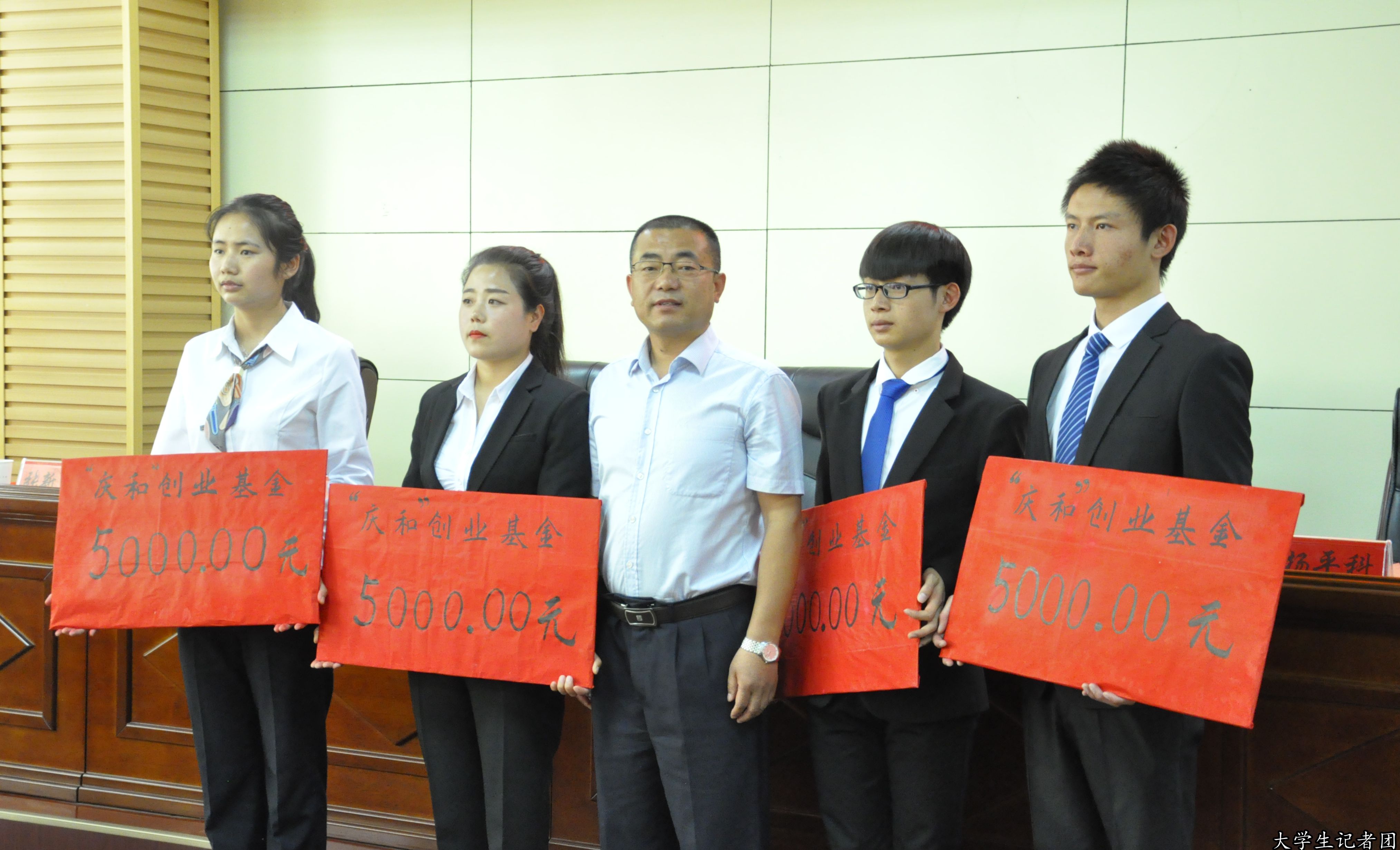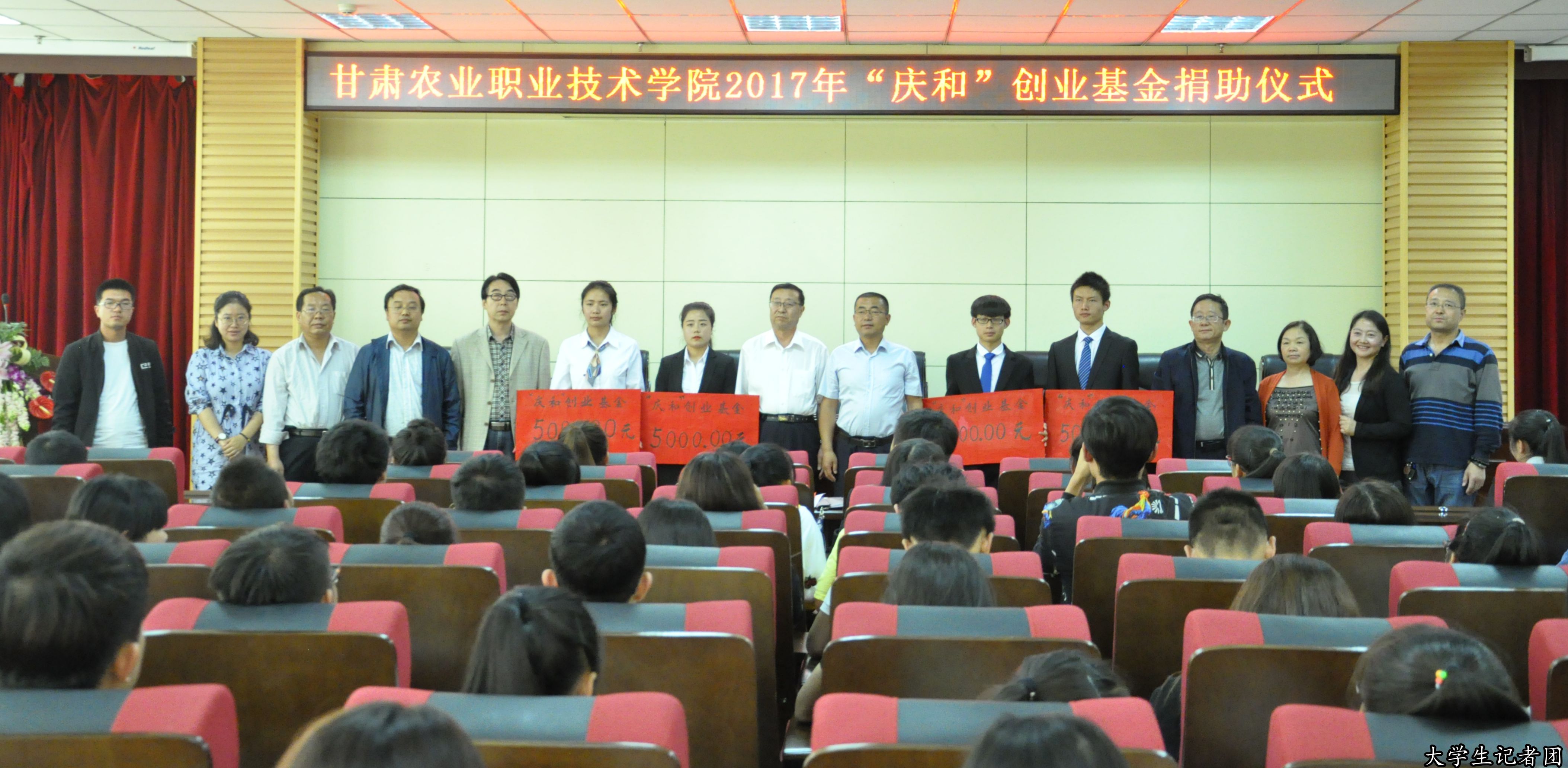 仪式最后,受捐助学生代表致感谢辞,感谢酒泉庆和农业开发有限公司和学院为大学生提供开启创业梦想的平台,要用任建平董事长作为创业奋斗的榜样,不忘学院领导的殷切嘱托,在农业技术系老师们的指导下,在“庆和”创业基金管理小组的监督下,严格遵守基金管理办法,科学使用创业孵化资金,用实实在在在的奋斗业绩,为母校争光,为庆和添彩。