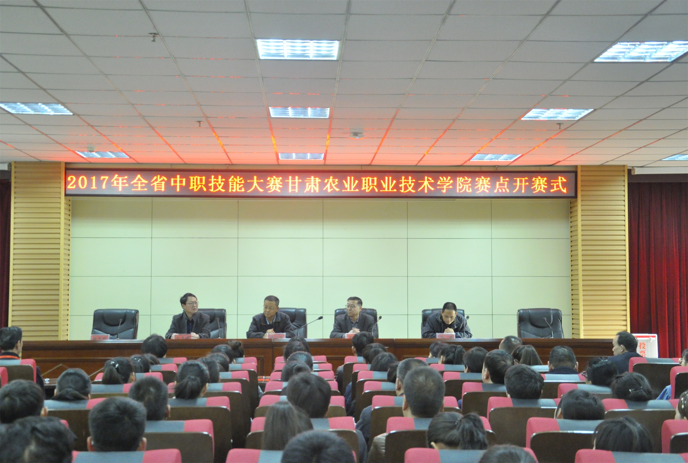 2017年3月20日,由省教育厅、省人力资源和社会保障厅、省财政厅、省卫生和计划生育委员会主办,我院承办的2017年甘肃省中等职业学校技能大赛(农林牧渔类)隆重开幕。甘肃省职业技术教育中心书记周亚夫、大赛仲裁委员会委员、农林牧渔类比赛仲裁长、定西市教育局职成科科长令勇峰、甘肃省职教中心科长李磊、甘肃农业职业技术学院副院长苗世林等有关领导出席开赛式。开赛式由学院教务处处长杨平科主持。