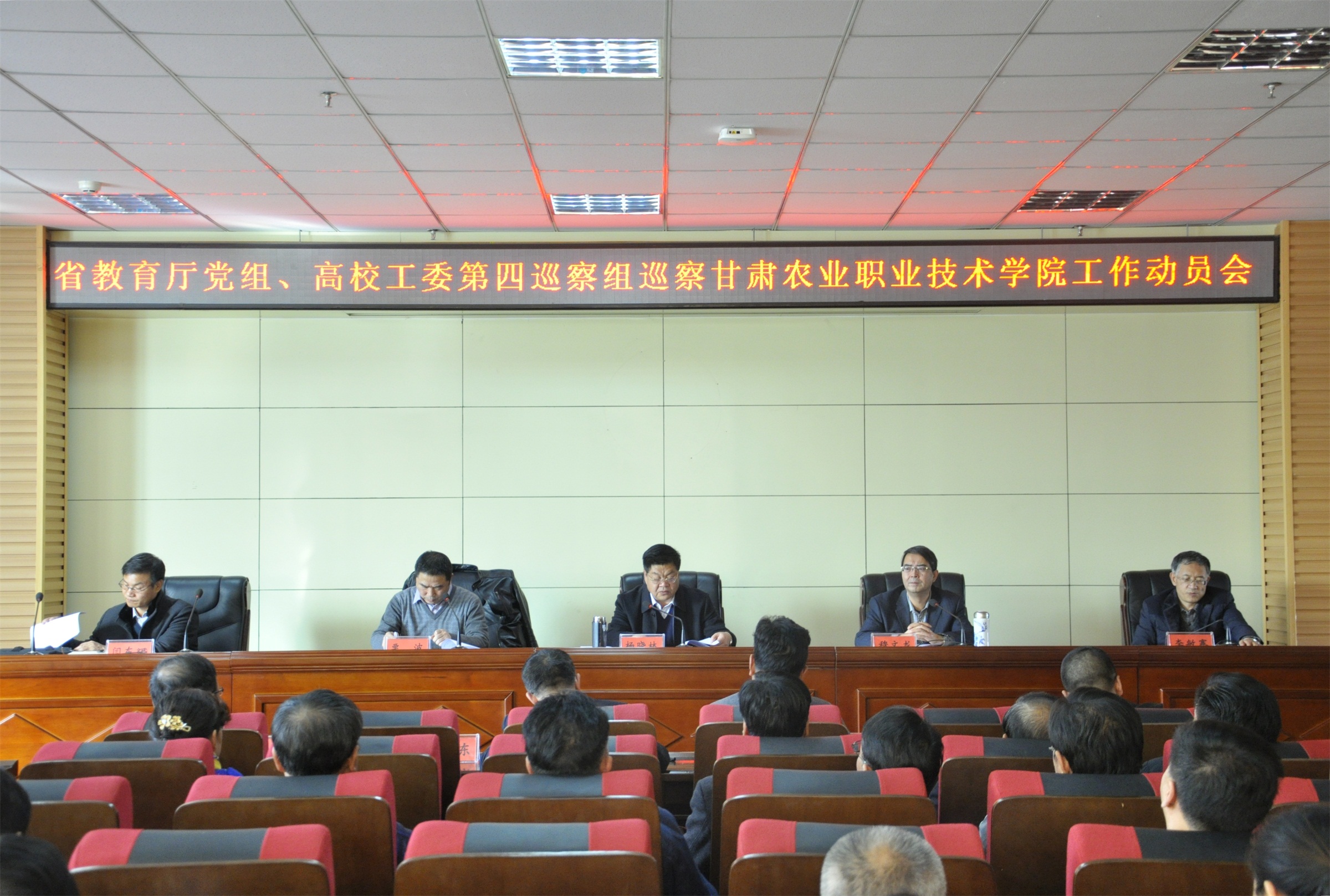 杨晓林组长讲话指出,巡视是推进全面从严治党、依规治党的重要手段,是加强党内监督的一项带有战略性的制度安排。按照省教育厅党组、高校工委的要求,对甘肃农业职业技术学院党委及领导班子成员开展为期40天的巡察。一是充分认识开展巡察工作的重大意义和重大作用;二是坚决贯彻政治巡察工作要求,实现全面从严治党。着重巡察执行政治纪律、政治规矩,执行廉洁纪律、执行组织纪律、执行生活、作风纪律等方面的情况;三是相互配合,共同努力,确保巡察工作取得实效。要求学院各部门积极配合,加强沟通,提前安排,切实保障巡察工作顺利进行。