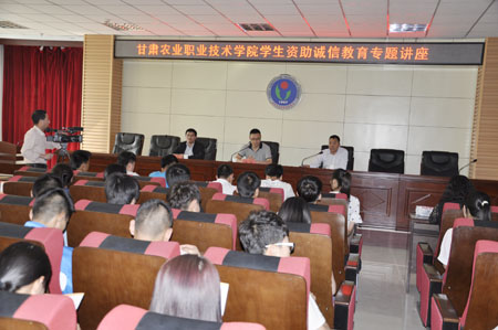 6月2号下午,由学生工作部(处)组织,邀请国家开发银行甘肃分行赵磊经理主讲的大学生资助诚信教育专题讲座在我院二号教学楼多功能会议室举行。讲座由学生工作部部长李明达主持,助贷干事及学生代表260余人现场聆听了讲座。