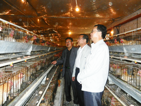 苗院长一行首先听取了公司负责人介绍公司的发展历程和企业基本情况,听取了带队老师对学生的实习情况介绍,参观了鸡场的孵化室、小鸡舍、成鸡舍及学生的宿舍与厨房。在参观中,苗院长一行认真询问了同学们的实习感受,鼓励他们要克服困难,在实习中要做到“三勤”,即手勤、嘴勤、腿勤,要干一行爱一行,遵守企业的规章制度。苗院长说,实习实训是我院实践教学的主要形式之一,是执行教学计划和课程大纲的关键环节,是实施专业知识与生产结合的必要教学形式。通过实习实训,可以使同学们具备良好地职业道德,掌握就业所必须的操作技能和初步的技能经验,达到培养目标的要求,提高同学们的就业能力。