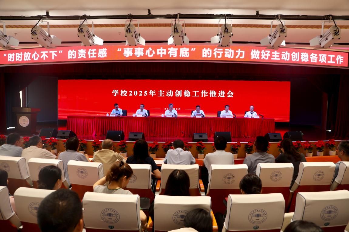 6月20日,学校召开2025年主动创稳工作推进会。校党委书记薛仰全出席会议并讲话,党委副书记、校长齐磊主持会议,在家党委班子成员参加会议。