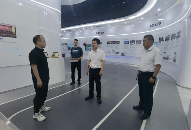 会后,马万锋一行3人参观走访广西职业技术学院。广西职业技术学院相关负责人介绍了学校历史沿革、办学定位、学科建设、专业设置、校企合作等情况。之后双方围绕党的建设、教育教学管理、实践教学、产教融合、学生就业等方面进行深入探讨,双方表示今后将进一步增强两校之间的亲密联系,更深层次地相互探讨、互学互鉴,共同进步,一起为职业教育高质量助力。