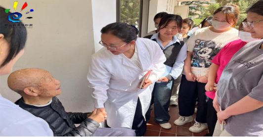 在科室见习环节,学生们分为多个小组,深入医养中心的老年医学科、康复理疗科、安宁疗护区等特色科室。见习过程中,学生们积极提问,主动参与基础护理操作,将课堂所学知识灵活运用于实际场景。