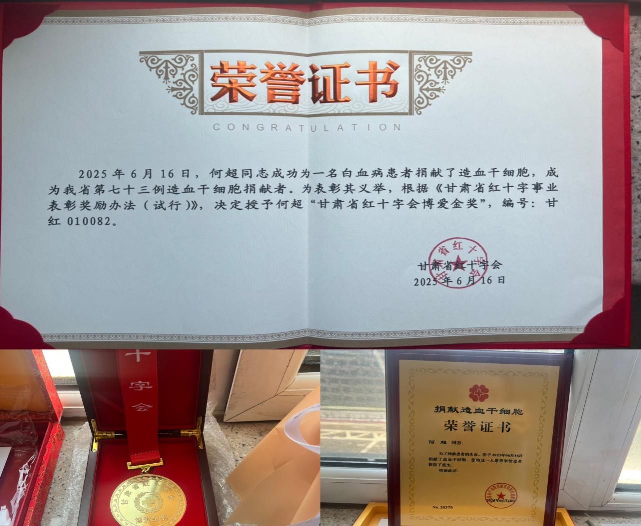 2025年6月16日上午,一场温暖的“生命接力”在兰州某医院造血干细胞采集室圆满完成——我院2023电子商务一班学生何超,以大爱之举成功捐献造血干细胞救治一名白血病患儿,成为我省第73例造血干细胞捐献者。