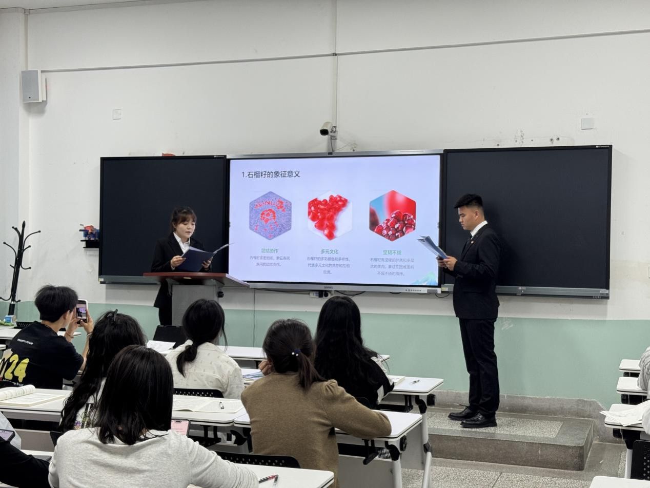 “作为新时代青年,我们要像石榴籽一样紧紧抱守,既要守护本民族文化瑰宝,更要携手促进多元文化共生共荣。”宣讲团成员吕志钦在分享中说道。不少同学表示,宣讲活动既有理论高度,又贴近青年视角,让民族团结理念真正入脑入心。
