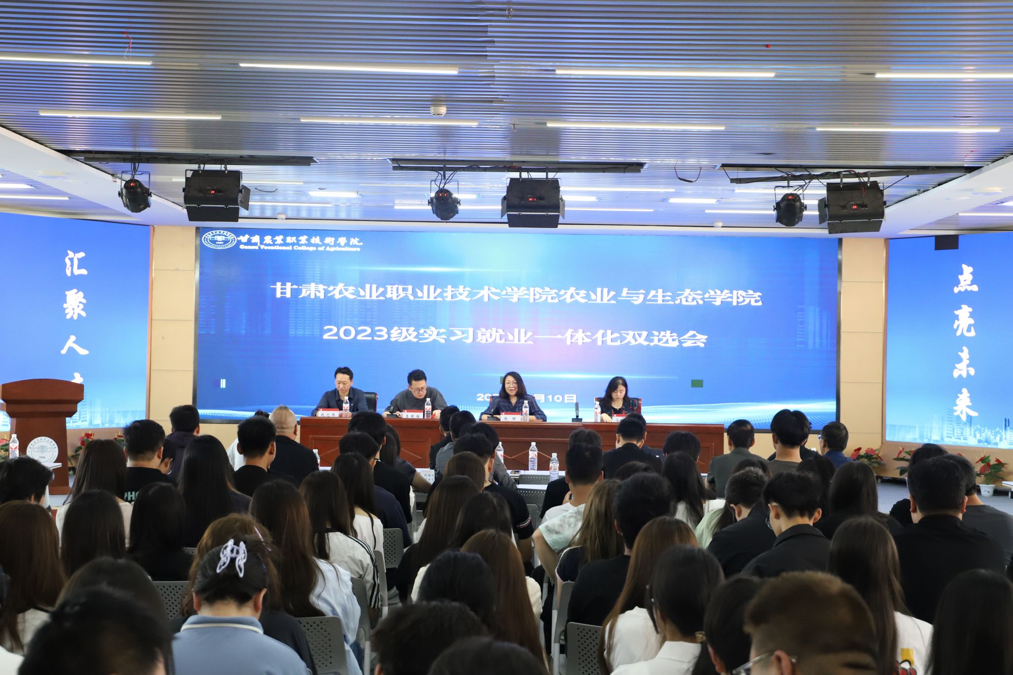 2025 年 6 月 10 日,农业与生态学院 2023 级实习就业一体化推进双选会顺利举行。本次双选会吸引了 23 家优质涉农企业参与,提供就业岗位 380余个。学院负责人、教师代表及 23 级学生线下参会,同步通过抖音直播间进行线上直播,累计观看量超 2000 人次。