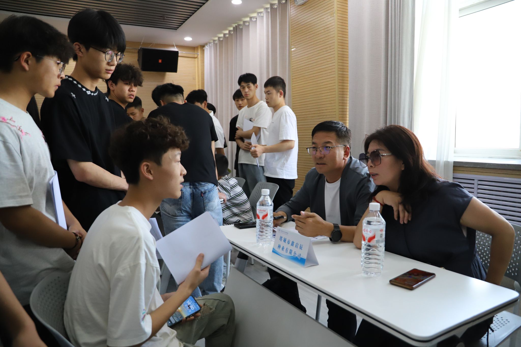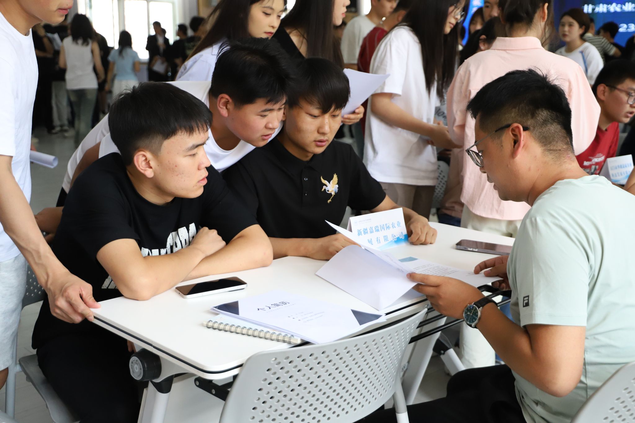 本次双选会采用 “线下主会场 + 线上云招聘” 双线模式。上午参加企业逐个进行了宣讲,介绍企业、岗位;下午通过同学们投递简历、面试等形式进行了双选。线上抖音直播间同步开展 ,未能到场的学生通过弹幕提问、投递电子简历等方式参与双选,实现 “云端” 求职。双选会现场气氛热烈,企业展位前人头攒动,同学们手持精心准备的简历,积极与招聘人员交流,详细询问岗位要求、工作内容、薪资待遇等信息。
