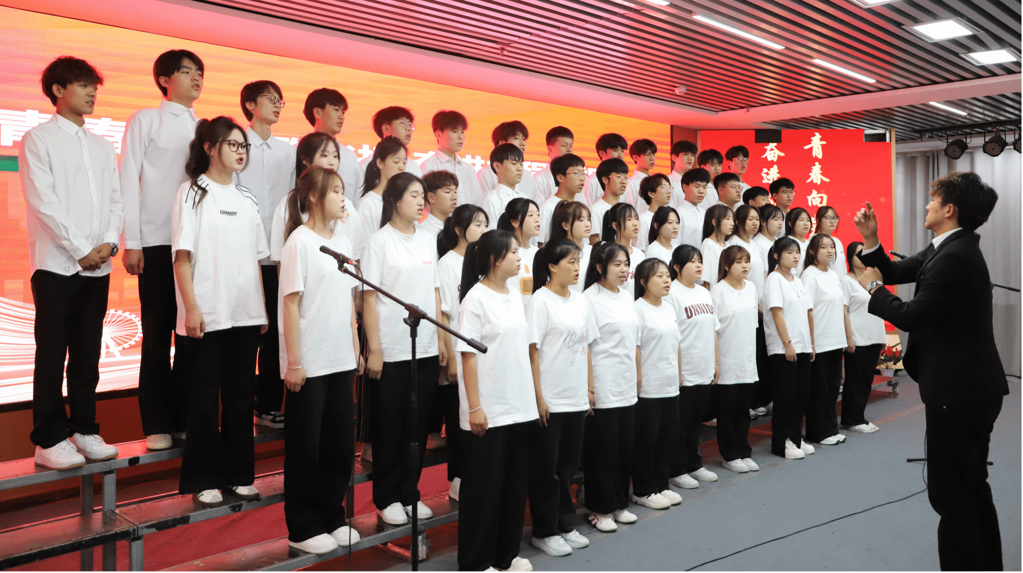 比赛现场灯光璀璨,气氛热烈。来自学院的各班级代表队依次登场,用饱满的热情、嘹亮的歌声演绎了一首首经典红歌与时代金曲。《唱支山歌给党听》旋律质朴真挚,将对党的感恩与追随融入每一个音符,引发全场共鸣;《我和我的祖国》旋律响起时,全场自发跟唱,是对“我和我的祖国,一刻也不能分割”的深情告白;《万疆》以悠扬曲调勾勒出华夏大地的壮丽辽阔,传递出青年学子对家国的深情眷恋;《夜空中最亮的星》以青春视角诠释理想信念,展现了新时代青年对未来的坚定追求;终场曲目《明天会更好》引得师生齐声高唱,将现场气氛推向高潮。