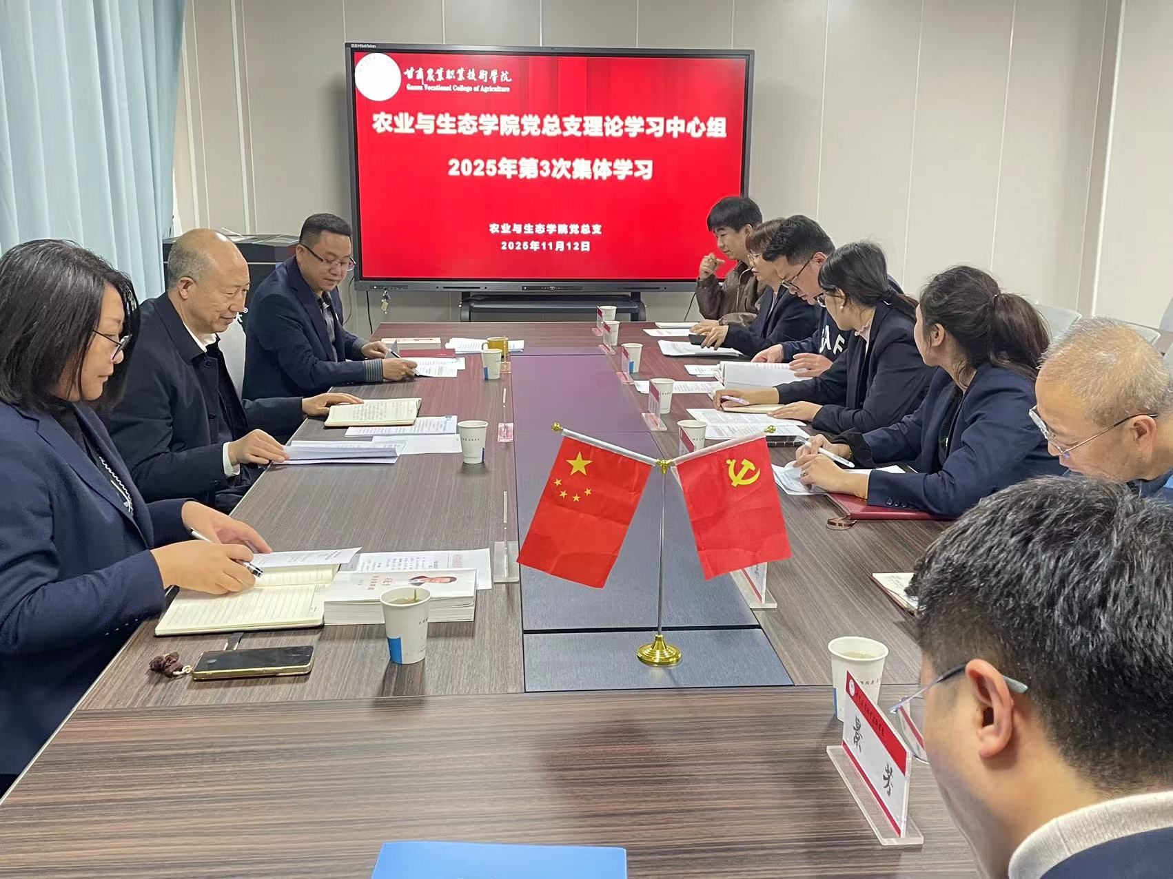 会议强调,要持续深入学习贯彻习近平新时代中国特色社会主义思想和党的二十届四中全会精神,深刻领会核心要义,切实把学习成果转化为推动学院事业高质量发展的实效。要锚定农职教育服务乡村振兴、助力农业高质量发展的使命,将理论学习与专业建设、人才培养、科研创新等中心工作深度融合,不断提升办学治理能力。要压实工作责任,各班子成员要带头践行 “以实干担当践责” 的要求,把学习成效体现在解决实际问题、提升工作效能上,为学校高质量发展和中国式现代化甘肃篇章贡献农业与生态学院的力量。