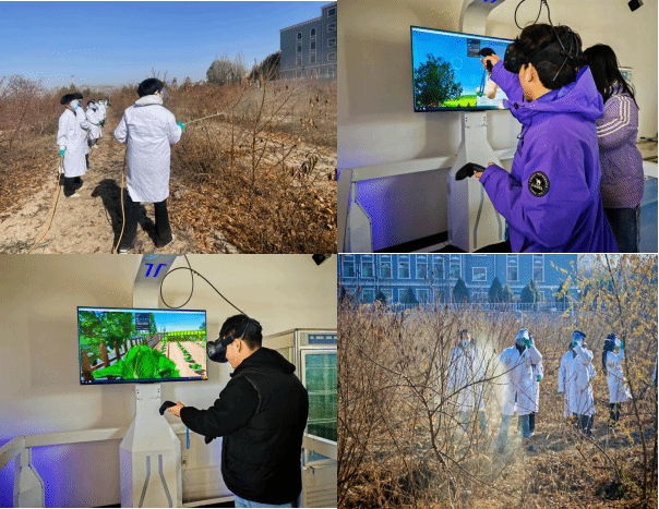 除传统田间实操外,植保VR教学成为本次活动的一大亮点。该设备依托虚拟仿真技术,可模拟不同作物、不同生育期的病虫害场景,学生佩戴后能“零距离”观察蚧壳虫、霜霉病等病虫害的形态特征与症状,还能通过手柄操作完成药剂选择、施药方式适配等虚拟防治流程。这种不受季节、场地限制的教学模式,让学生可反复练习植保技能,有效弥补了传统教学中病虫害场景难复现、实操练习受局限的不足。“课本上记不住的病害特征,戴上VR眼镜一看就懂了,互动式学习让植保知识更生动易掌握!”学生们的真切感受,道出了VR教学的独特优势。