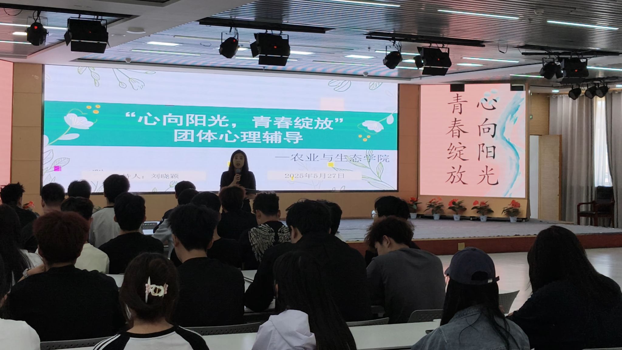 为进一步提升大学生心理健康水平,促进学生之间的交流与互动,营造积极向上的校园氛围,2025年5月28日,农业与生态学院在英甲楼学术报告厅举办了“心向阳光·青春绽放”团体心理辅导活动。此次活动吸引了众多同学踊跃参与,心理干事刘老师通过一系列趣味横生的互动游戏,让同学们在欢笑中释放压力、收获友谊,感悟心灵成长。