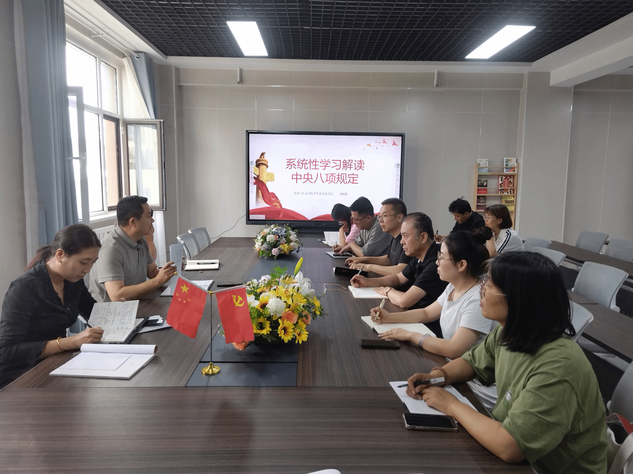 在讲解过程中,刘晓颖列举了多起违反八项规定的典型案例,通过真实的故事让党员们深刻认识到违反规定的严重后果。最后她提出,大家要将八项规定的精神内化于心、外化于行,在学习上勤奋刻苦,在学生工作中认真负责,在生活中勤俭节约,以实际行动践行党的纪律要求,为学院和学校的发展贡献自己的力量。