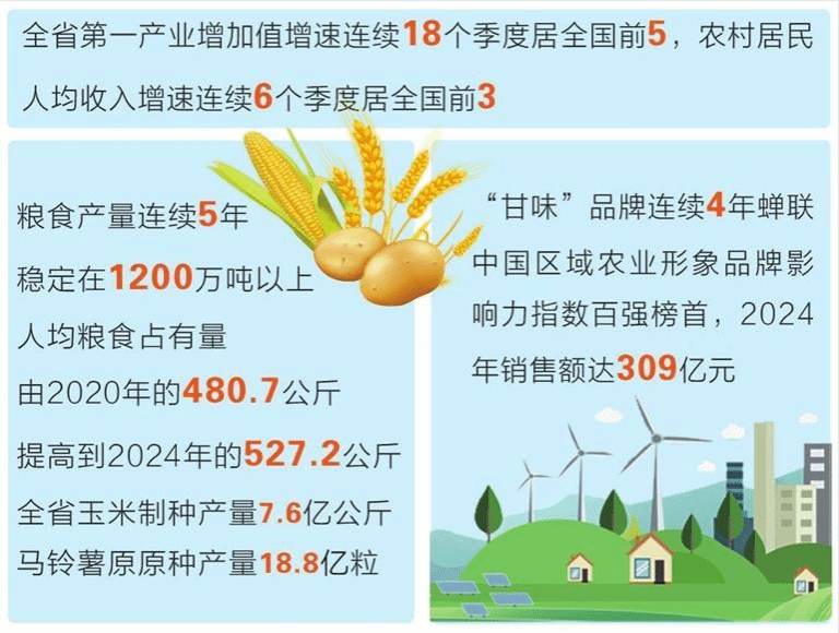 产业发展由“扩规模”向“提质效”集聚提升。深度挖掘寒旱特质,启动建设全国现代寒旱特色农业先行基地,开展“扩量、提质、延链、增效”四大行动,全力打造“牛羊菜果薯药粮种”八大产业集群和25个产业带。实施“引大引强引头部”行动,新增转规农产品加工企业214家,农产品加工转化率提升至65%。“甘味”品牌连续4年蝉联中国区域农业形象品牌影响力指数百强榜首,通过实施“甘味出陇”等行动,设立“甘味”全国授权门店100个、国内终端市场运营中心8个、海外仓储运营中心5个,2024年销售额达309亿元,农产品出口37亿元。