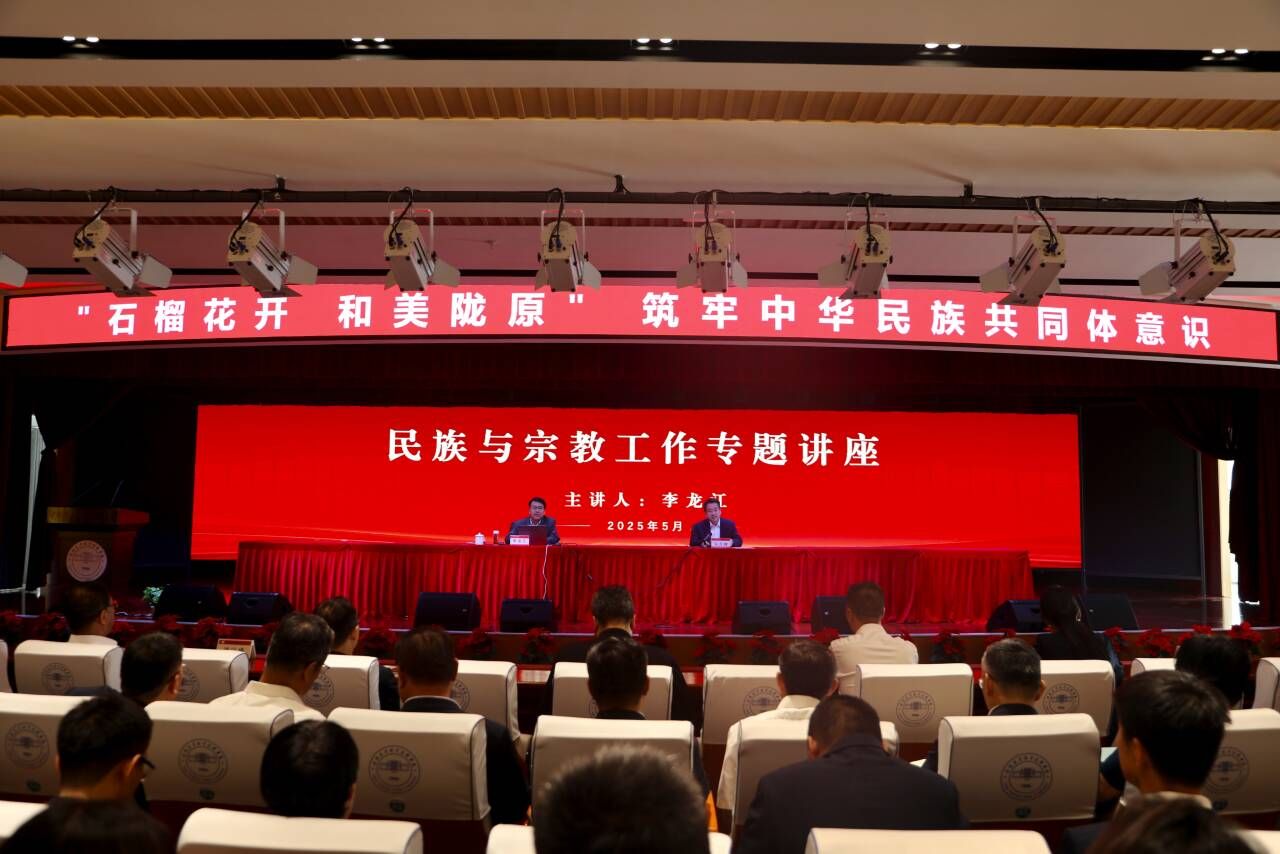 为开展好全省第22个民族团结进步宣传月活动,铸牢中华民族共同体意识。5月23日,学校特邀甘肃省委党校李龙江教授来校作专题报告,在家党委班子成员参加报告会。党委委员、副校长马万锋主持报告会。