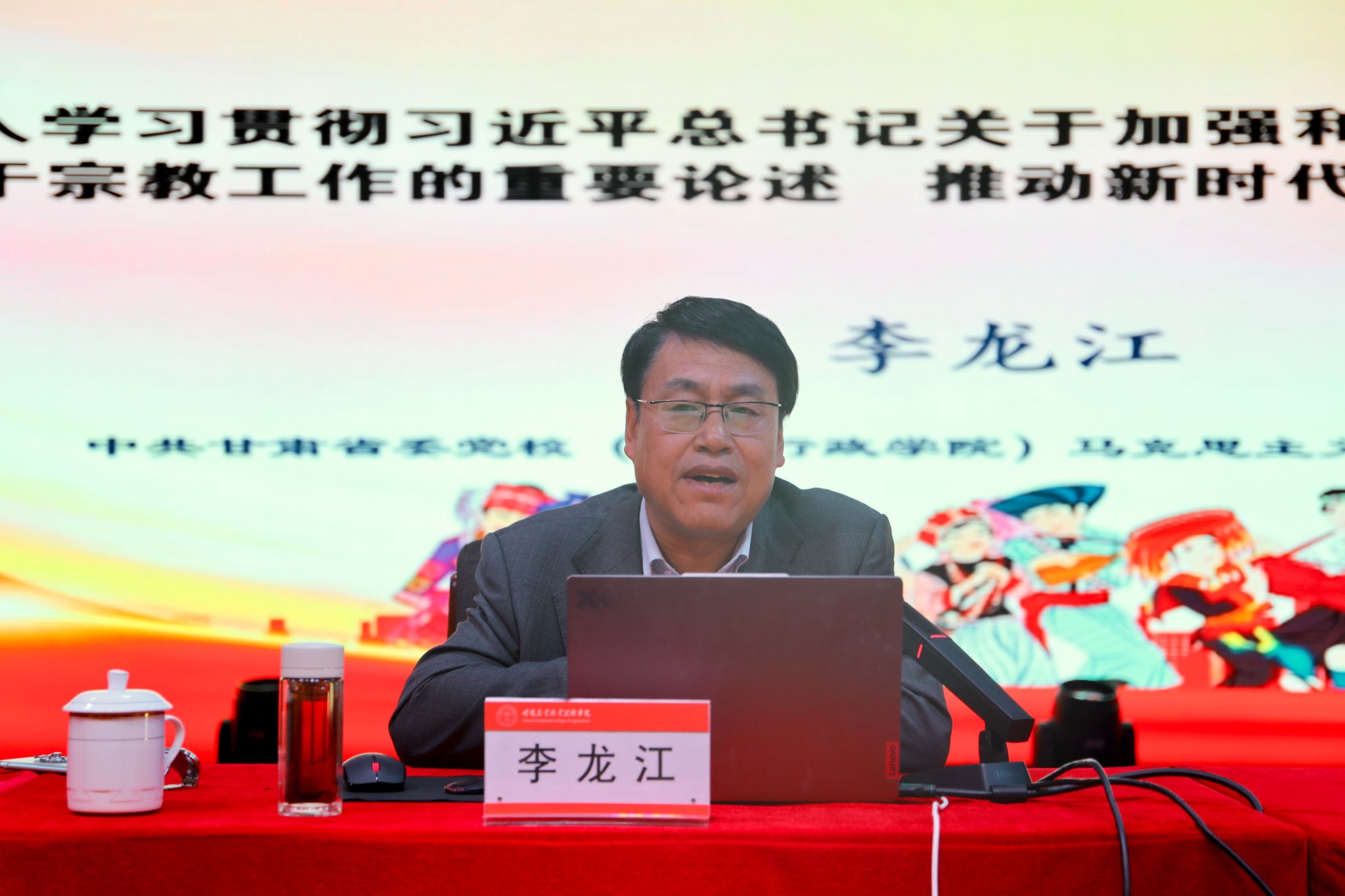 李龙江教授从学习贯彻习近平总书记关于加强和改进民族工作的重要思想、关于宗教工作的重要论述到新时代如何推动民族与宗教工作高质量发展进行了深入解读。并结合甘肃实际、甘肃高校实际就如何做好高校民族与宗教工作做了交流。